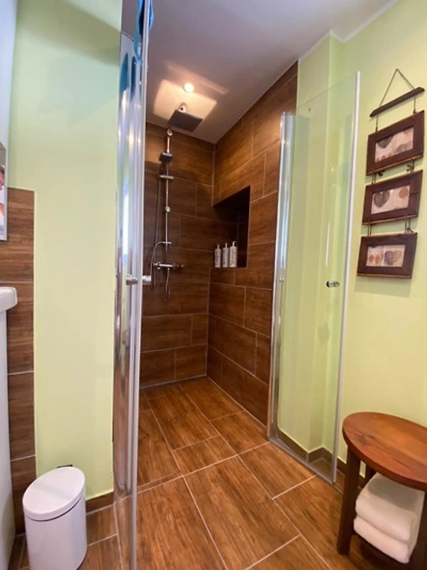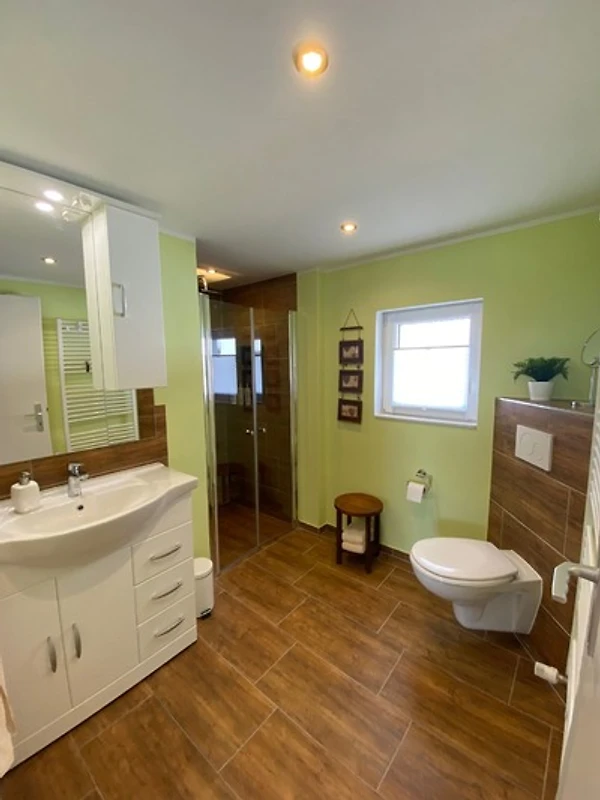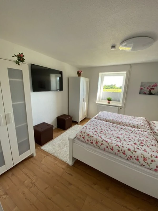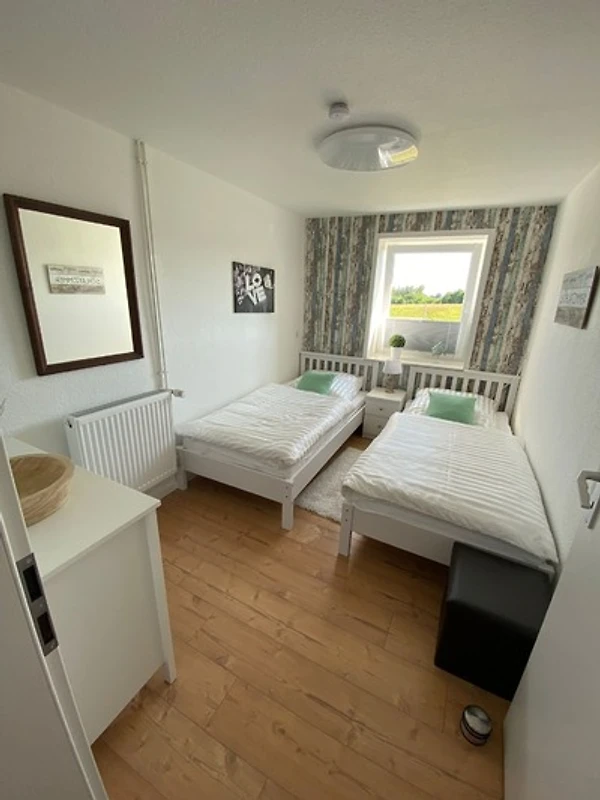 Im Schlafzimmer befindet sich ein Doppelbett inkl. Kleiderschrank und TV. Ein weiteres Zimmer, welches über zwei Einzelbetten und TV Anschluss verfügt, befindet sich gleich nebenan. Gegenüber gibt ein Einzelzimmer ebenfalls mit TV . Das Badezimmer mit Dusche und Handtuchnutzung steht euch selbstverständlich auch zu Verfügung. Unter anderem gibt es eine kleine Gästetoilette.