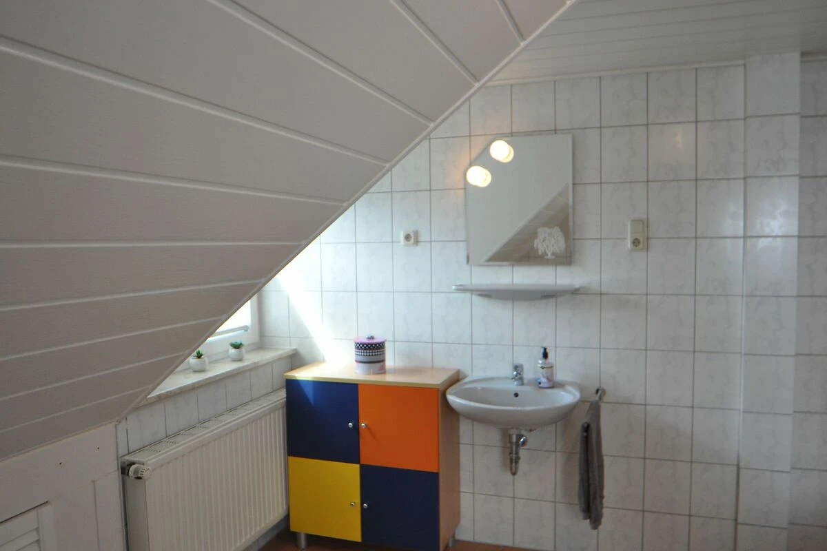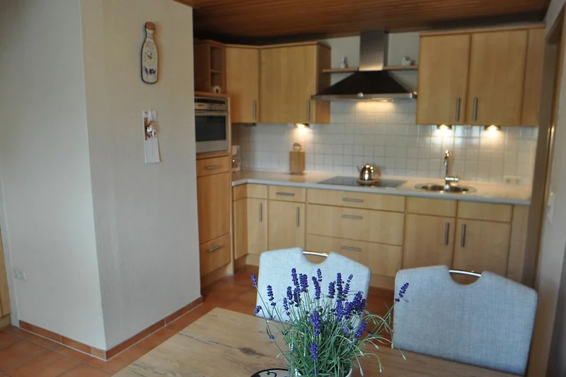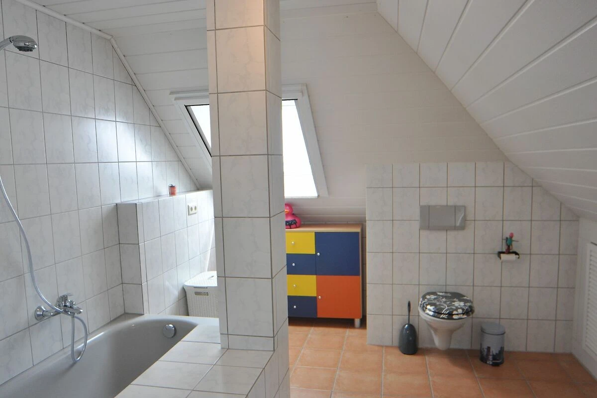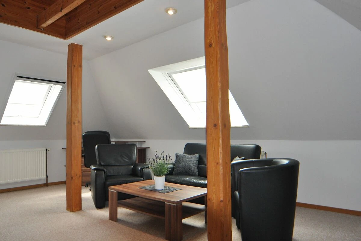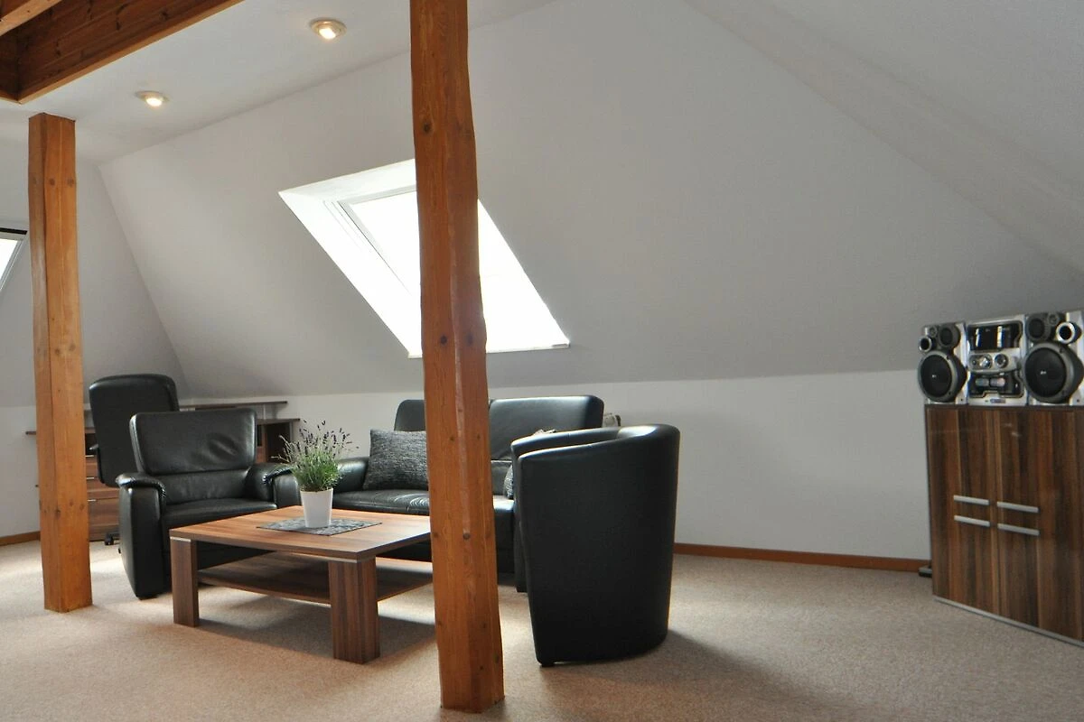 100 qm grosse Oberwohnung für bis zu drei Personen. Grosses Wohnzimmer mit Garnitur, Fernseher sowie einem Schreibtisch, komplett ausgestattete Einbauküche mit Spülmaschine und Essbereich für vier Personen, Badezimmer mit Badewanne/Dusche und WC sowie ein Schlafzimmer mit Doppelbett und ein Einzelzimmer mit Einzelbett (90 x 200 cm). Kinder-Reisebett steht zur Verfügung. Im Erdgeschoss befindet sich ein grosser Eingangsbereich mit Garderobe und Schuhablage. Alle Fenster sind mit Fliegengittern und Aussenjalousien ausgestattet.