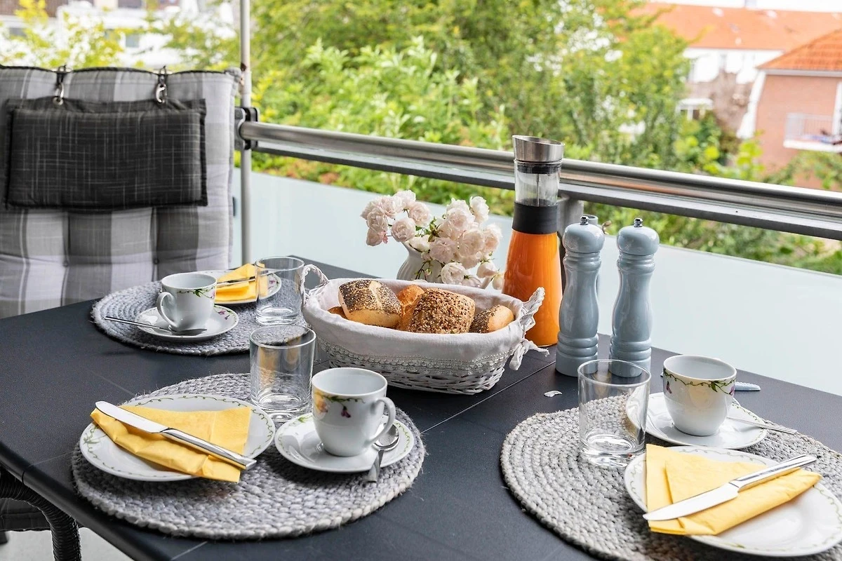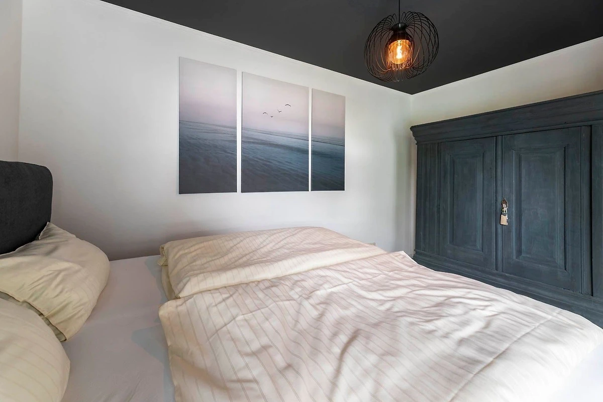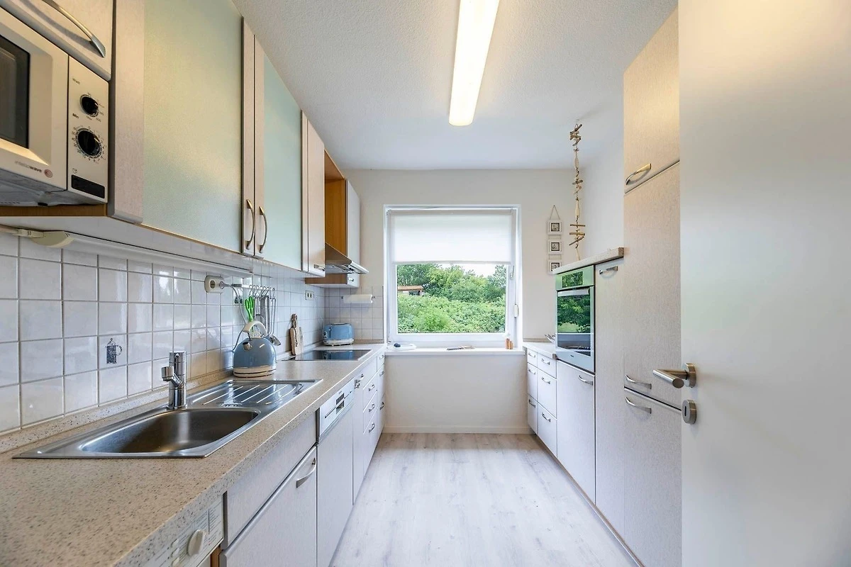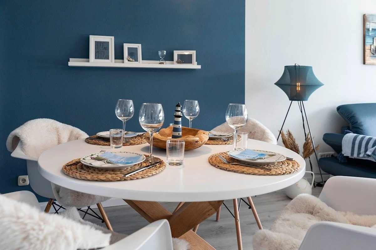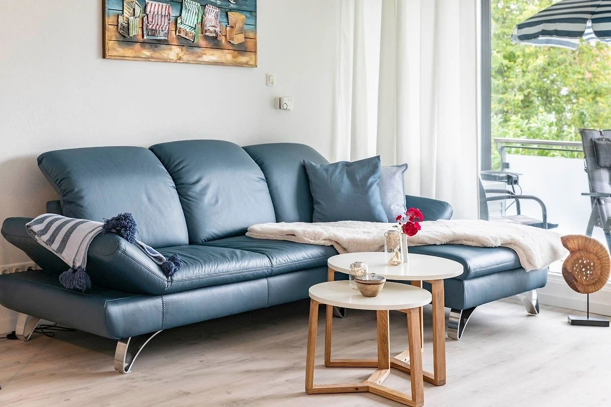 Die Ferienwohnung "Regina's Strandkorb" bietet eine stilvolle und moderne Einrichtung für bis zu 4 Erwachsene. Das lichtdurchflutete Wohnzimmer mit Zugang zum grossen Südbalkon lädt zum Verweilen ein und ist mit einem komfortablen Sofa sowie einem modernen Fernseher ausgestattet, der Zugang zu MagentaTV, Netflix und Disney+ bietet. Die separate Küche ist umfassend eingerichtet mit einem Ceran-Kochfeld, Mikrowelle, Backofen, Airfryer, Wasserkocher, Kaffeemaschine, Toaster, grossem Kühlschrank mit Gefrierfach und einer Spülmaschine. In der Wohnung befinden sich zwei Schlafzimmer, eines mit einem Boxspringbett (180x200 cm) und ein weiteres mit einem ausziehbaren Schubkastenbett (Doppelbett 160x200 cm). Das Badezimmer erfüllt mit Dusche, beleuchtetem Spiegel und Waschbecken alle Ansprüche. Die Unterkunft verfügt zudem über ausreichend Stauraum in Kommoden und einem grossen Kleiderschrank. Haustiere sind erlaubt.