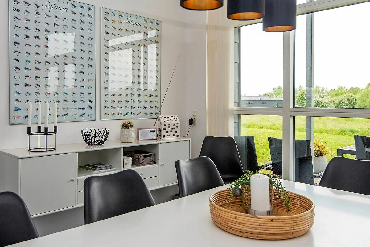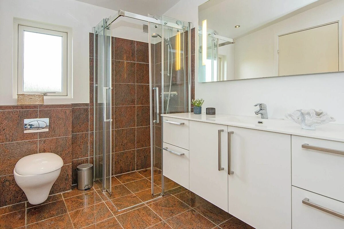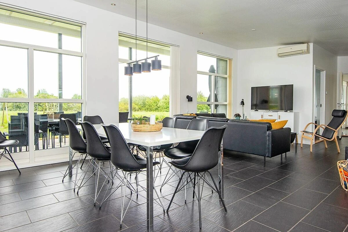 , Küche(Herd(Induktion), Kaffeemaschine, Backofen, Mikrowelle, Kühl-/Gefrierkombination), Wohn-/Schlafzimmer(TV(Deutsch Fernsehsender, dänische Fernsehsender)), Schlafzimmer(Doppelbett, Etagenbett), Schlafzimmer(Doppelbett, Etagenbett), Schlafzimmer(Doppelbett), Schlafzimmer(Doppelbett), Badezimmer(Waschbecken, Dusche, Toilette, Waschmaschine), Badezimmer(Waschbecken, Dusche, Toilette), Carport, Radio, Dunstabzugshaube, Tiefkühlschrank(60-99L), Sauna(im Innenbereich), Heizung(elektrisch), Terrasse, Garten, Gartenmöbel, Liegestühle, Spielgeräte, Luft-Luft-Wärmepumpe , Luft-Wasser-Wärmepumpe