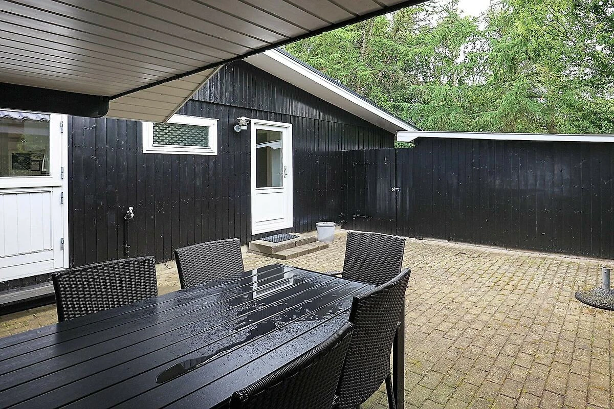 , Küche(Herd(Induktion), Kaffeemaschine, Mikrowelle, Spülmaschine, Kühl-/Gefrierkombination), Wohn-/Schlafzimmer(TV(dänische Fernsehsender)), Schlafzimmer(Doppelbett), Schlafzimmer(Doppelbett), Schlafzimmer(Doppelbett), Badezimmer(Trockner, Waschbecken, Dusche, Toilette, Waschmaschine), Carport, Babybett, Heizung(elektrisch), Terrasse, Gartenmöbel, Liegestühle, Spielgeräte, Hochstuhl, Luft-Luft-Wärmepumpe