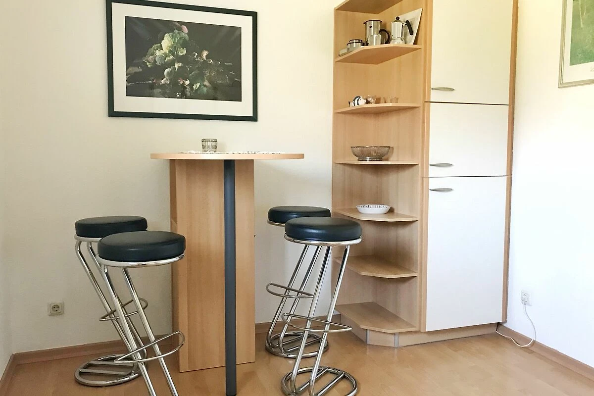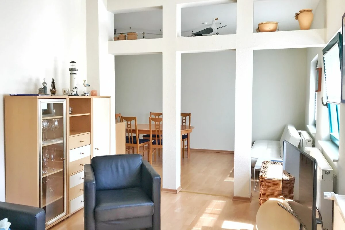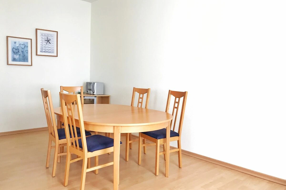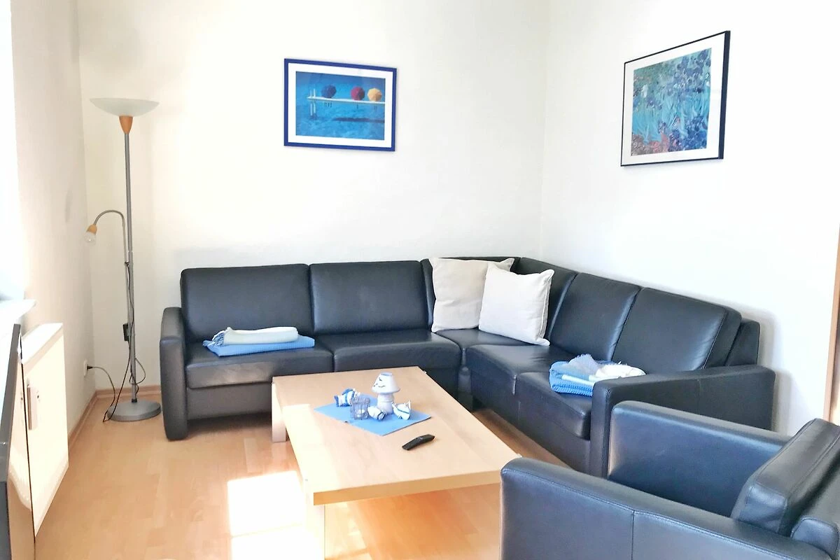 Die Wohnung befindet sich im 2.OG und bietet Platz für 4 Personen. Sie besteht aus insgesamt 3 Zimmern auf ca. 100 qm Wohnfläche: ein Schlafzimmer mit Doppelbett ; ein Schlafzimmer mit Schlafcouch für 2 Personen; ein Wohn-Esszimmer mit Flachbildschirm-TV sowie ein Bad mit Dusche und WC, einer Küche und einem Abstellraum. Die separate Küche ist ausgestattet mit Ceranfeld, Backofen, Mikrowelle, Kühlschrank, Gefriermöglichkeit, Kaffeemaschine, Toaster und Wasserkocher. Zur Wohnung gehört ein Pkw-Stellplatz am Haus.