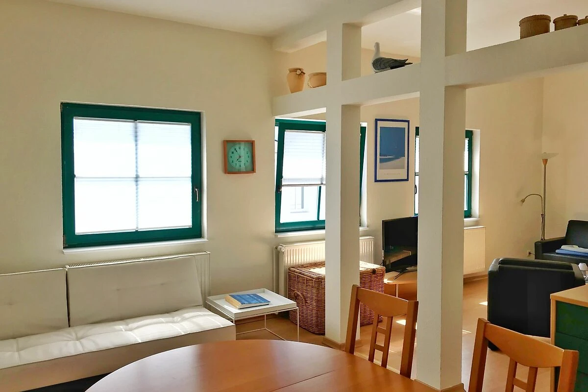 Oder Sie suchen sich einen öffentlichen Parkplätze in der Umgebung. Direkt vor dem Haus gibt es an der Hafenstraße einen Parkstreifen, wo man stundenweise (mit Parkscheibe) parken kann, so dass das Be- und Entladen bequem möglich ist.