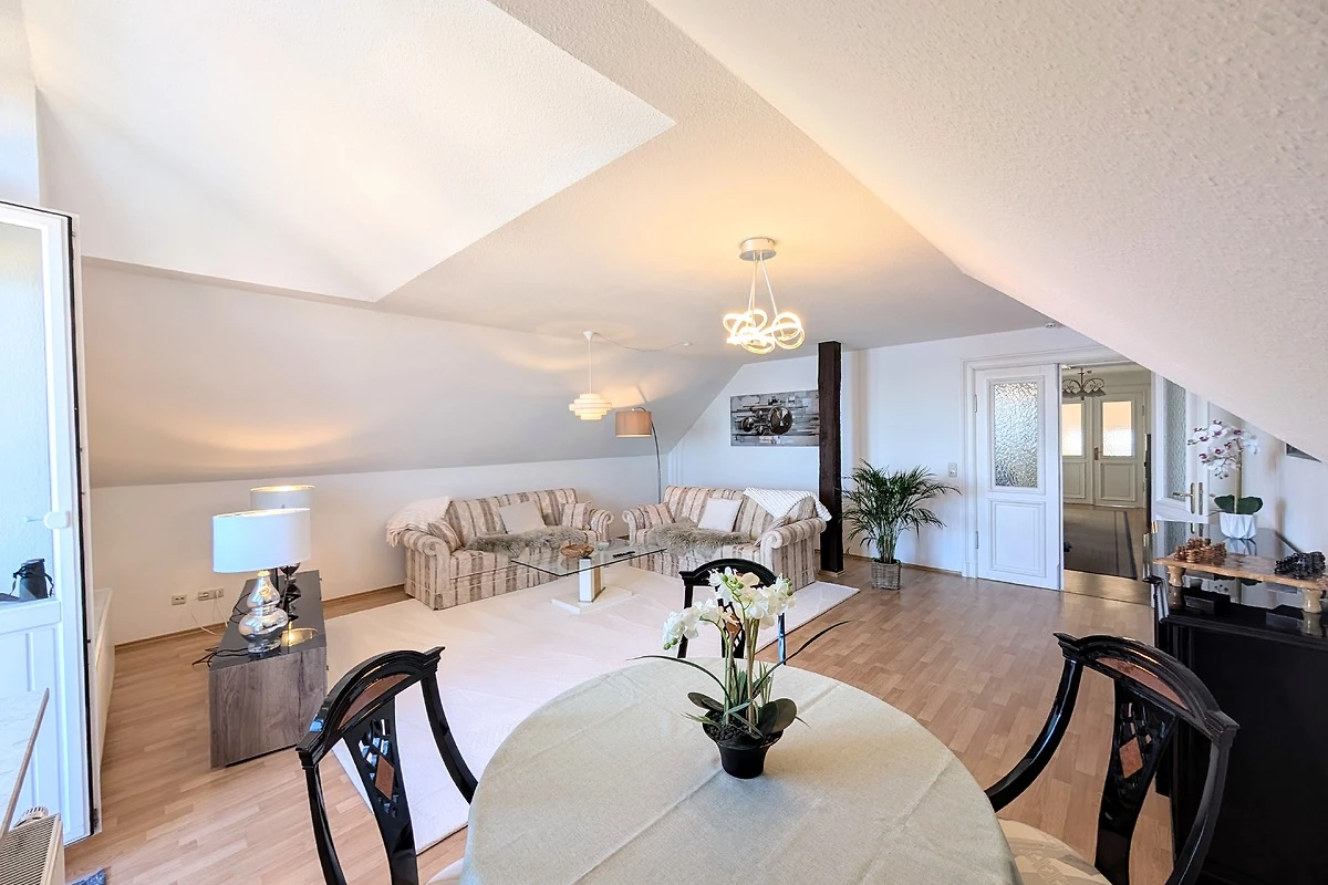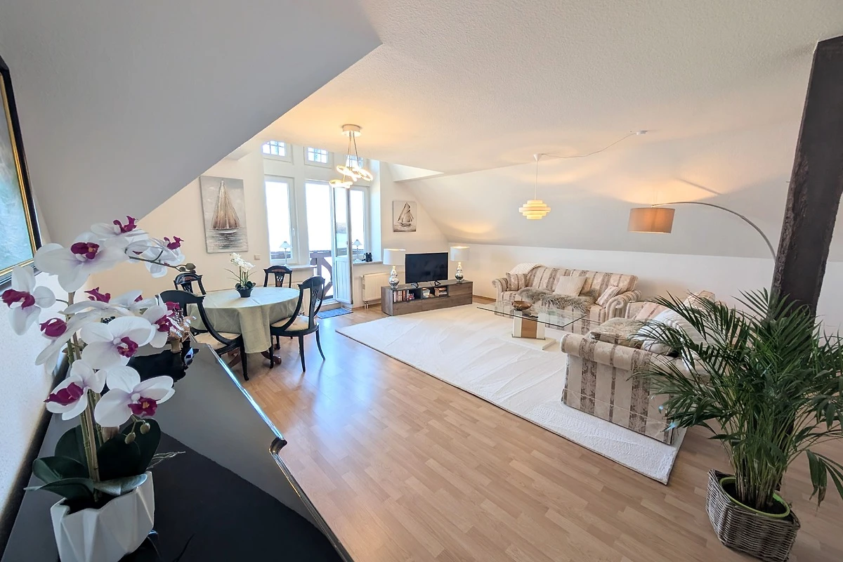 Auf 100 m² Wohnfläche bietet die Ferienwohnung genügend Freiraum für 2 Personen. Die Wohnung erstreck sich über das gesamte Dachgeschoss und bietet dadurch den schönsten Blick über den Schweriner See, bis zum Horizont. Von der Diele gelangen Sie in alle Räume. Das Wohnzimmer lädt mit einer großen Sofalandschaft und einem Essbereich zu gemütlichen Stunden ein. Vom Wohnbereich gelangen Sie auf den kleinen Balkon. Genießen Sie den freien Blick über den ganzen Schweriner See und zur Insel Kaninchenwerder. Das Schlafzimmer bietet mit seinem Doppelbett und der Leseecke einen idealen Ruhebereich. Auch von hier haben Sie einen wundervollen Blick auf den See. Auf Wunsch können Sie ein zweites Schlafzimmer mit Einzelbett hinzu bekommen. In der voll ausgestatteten Küche können Sie Ihre Lieblingsspeisen zubereiten. Das Bad ist mit Badewanne und einer großen Dusche ausgestattet. Zur Unterhaltung stehen Ihnen ein Smart-TV und WLAN zur Verfügung. Parken können Sie direkt vor dem Haus. Ein SUP (Stand Up Paddle) können Sie kostenfrei nutzen. 2 Fahrräder können gegen Gebühr gemietet werden.