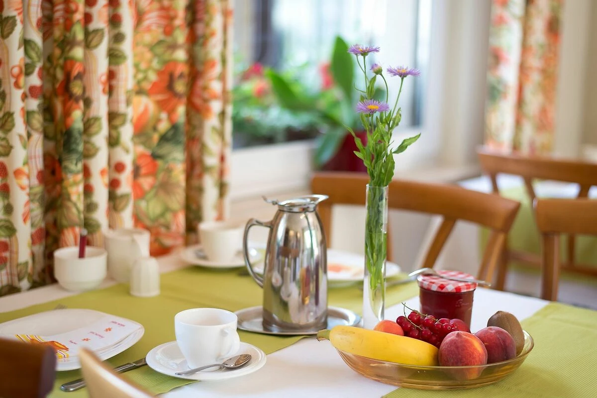 Neun individuell und liebevoll eingerichtete Themenzimmer, modern und komfortabel ausgestattet. Kreativ und immer mit einem kleinen Augenzwinkern wurden Themenzimmer, wie z.B. 7. Himmel, Fitnessraum, Südsee, Ladylike oder Bernsteinzimmer eingerichtet. Gehen Sie auf Entdeckungsreise nach den vielen kleinen Details in den Zimmern. Das Gute-Laune-Bio-Vital-Frühstücksbuffet macht Sie fit für den Tag. Grosse abschliessbare Fahrradgarage für 20 Räder mit Lademöglichkeiten für E-Bikes. Parkmöglichkeiten direkt am Haus.