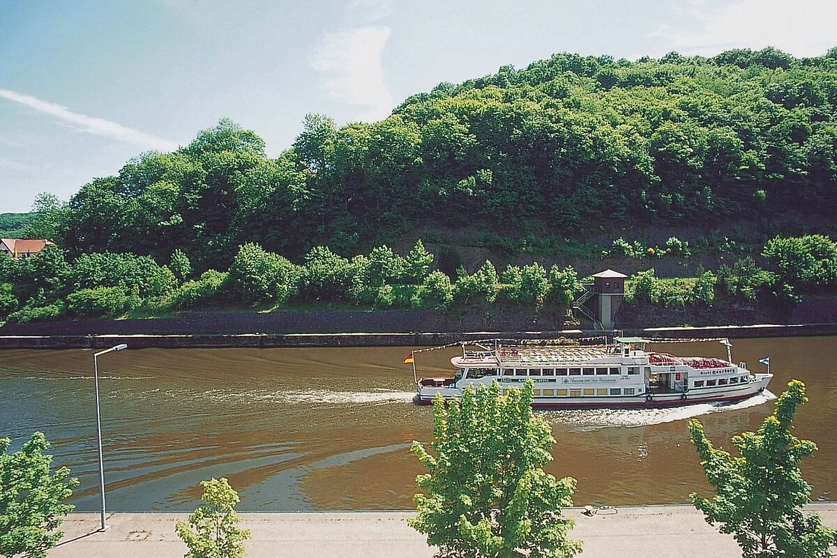 Im Zentrum Mettlachs, direkt am Fluss an der Saarbrücke. Das Hotel liegt direkt am Saar-Radweg und am Saar-Hunsrück-Steig