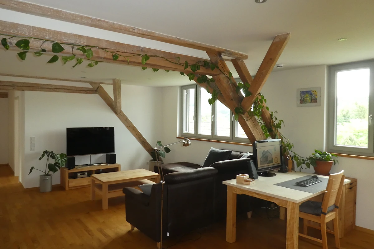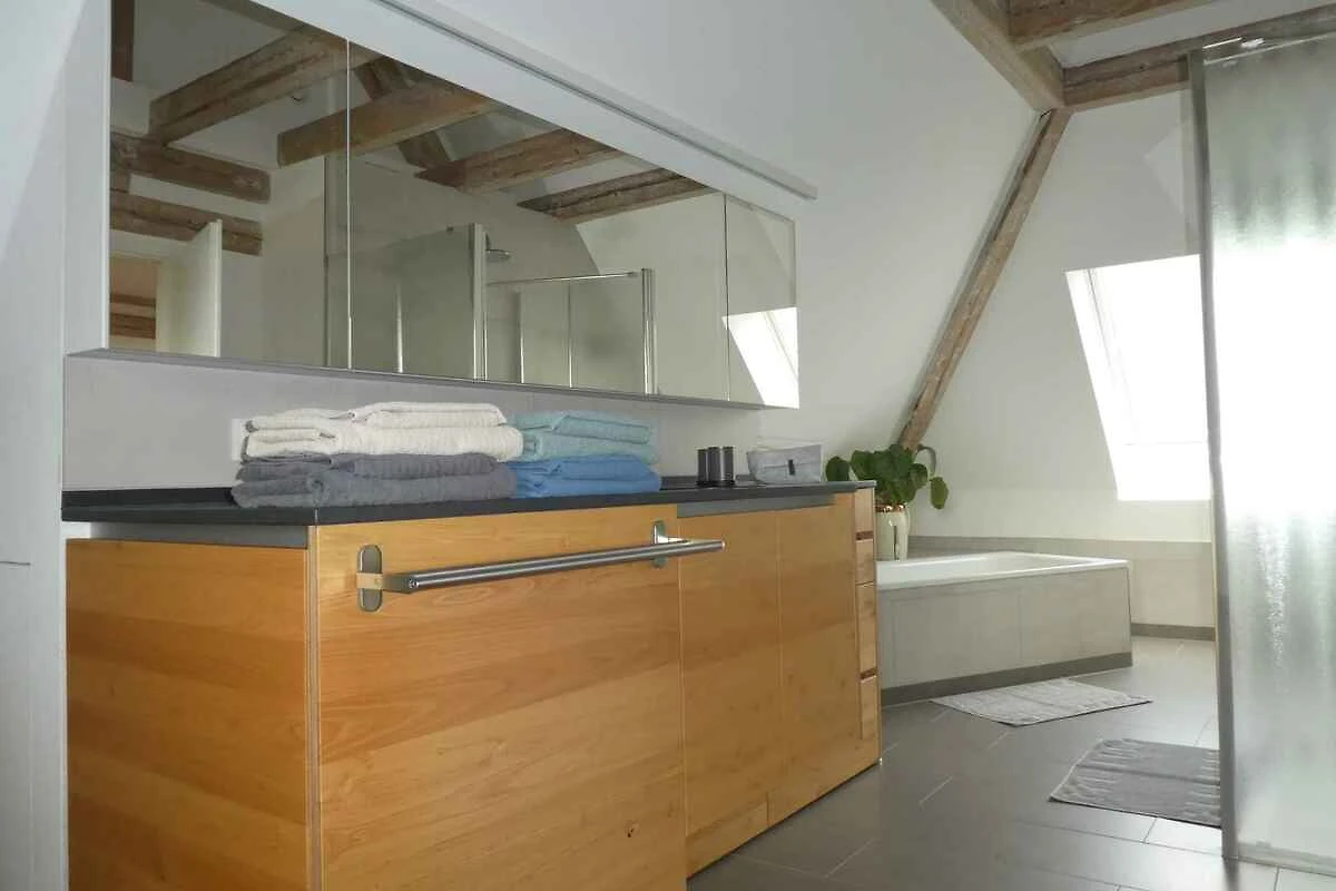 Die Ferienwohnung befindet sich in einem 1937 erbauten Apartementhaus, wurde im Jahr 2018 renoviert und ist modern und luxuriös eingerichtet. Das Grundstück liegt in einem Wohngebiet. Auch wegen des Ausblicks vom Grundstück auf die Wälder und der ruhigen und sonnigen Lage am Waldrand ist das Domizil beliebt. Zur alleinigen Nutzung stehen zur Verfügung: Gartenmöbel und Hof. Balkon ( 9 qm). Abschliessbarer Raum für Fahrräder.