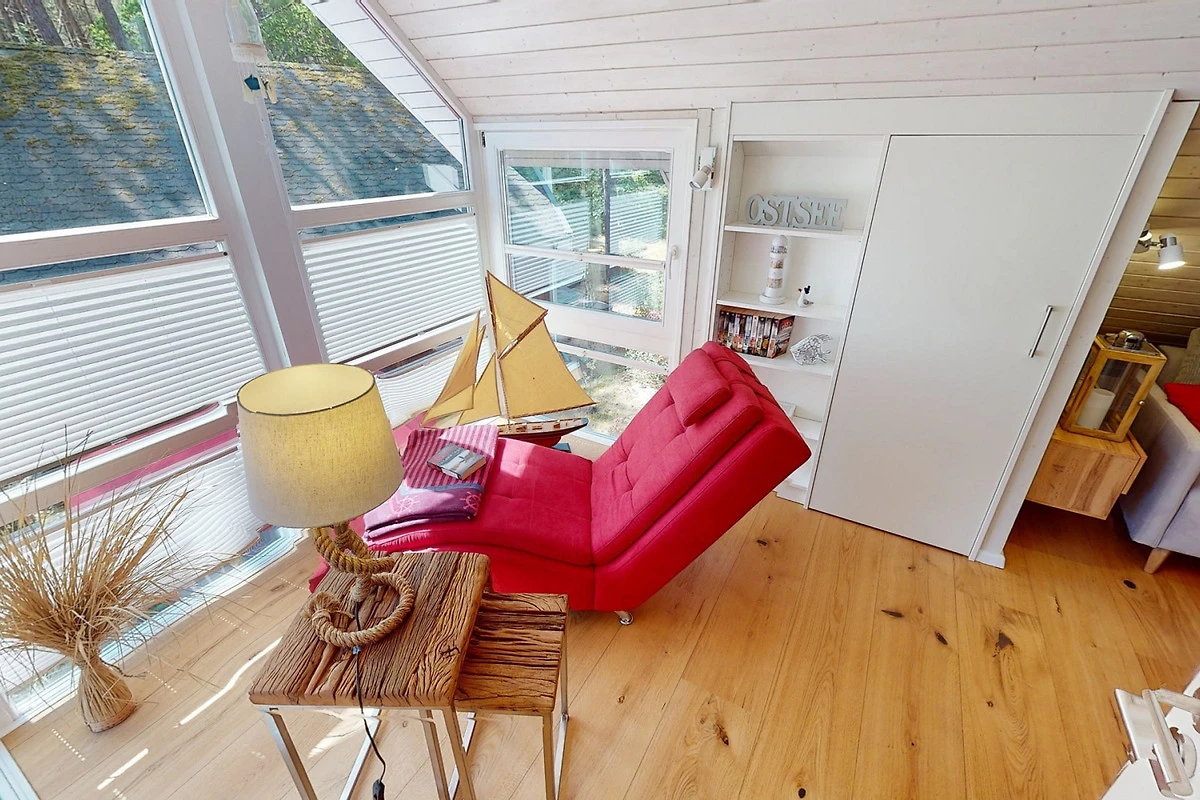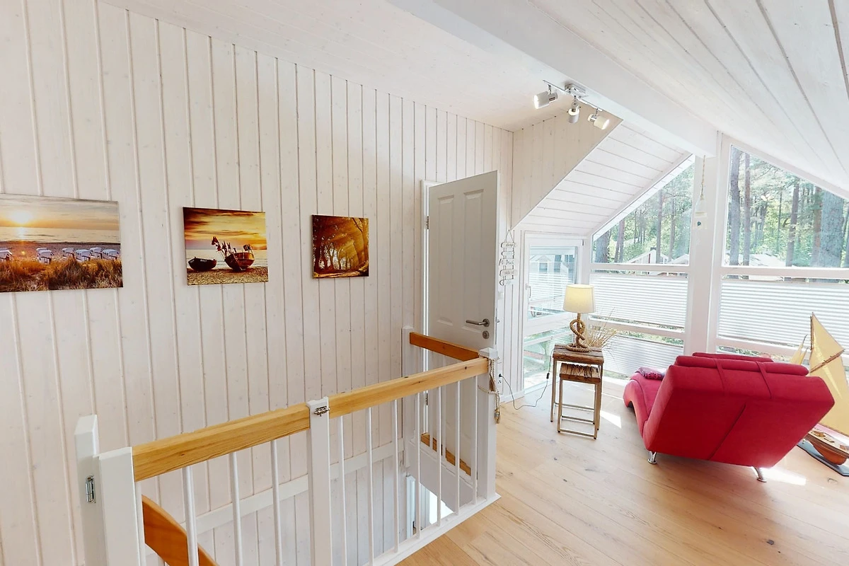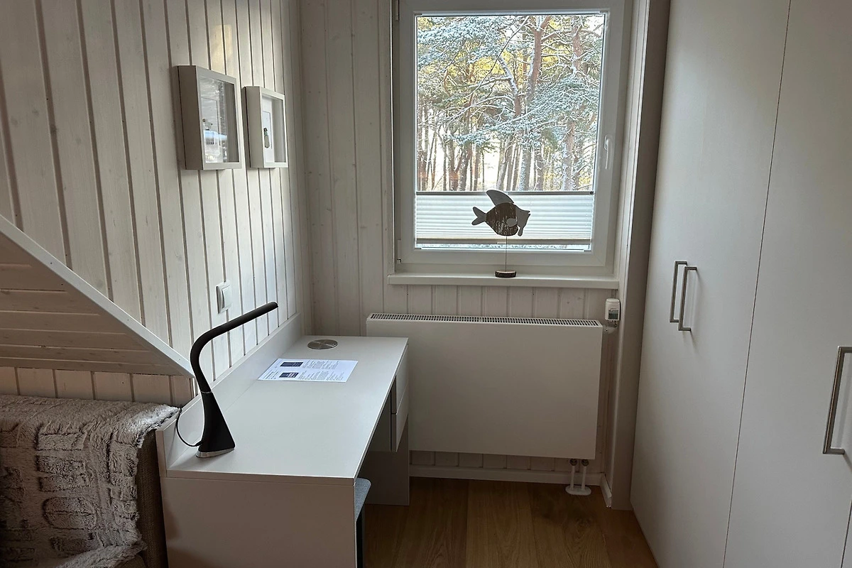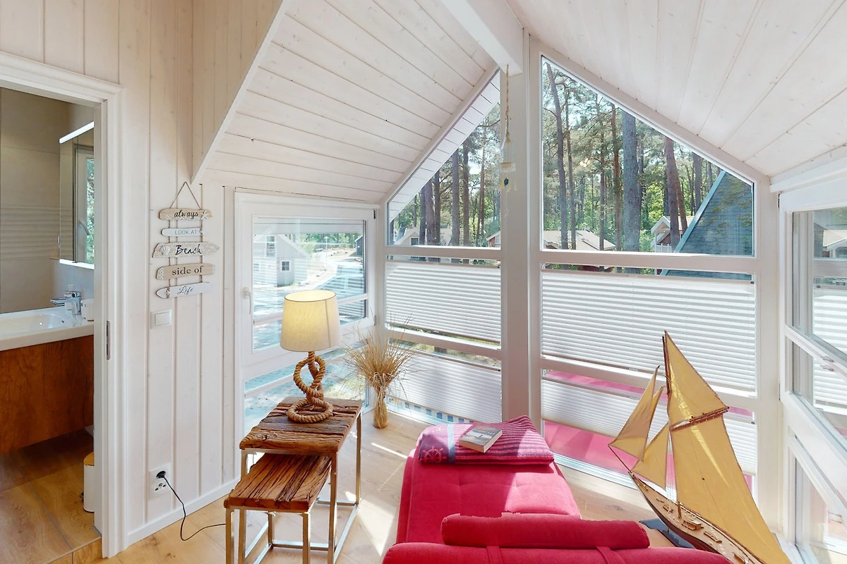 Sie geniessen ein gemeinsames Frühstück auf der Holzterrasse oder der lieber im verglasten Erker? Mit dem Meer im Hintergrund. Und danach eine Wanderung über die Halbinsel Mönchgut? Am Strand entlang oder durch den Wald? Oder doch lieber den Tag am wunderschönen, hellen Sandstrand geniessen? Im eigenen Strandkorb der Ihnen von Mai-Oktober zur Verfügung steht. Am Nachmittag können Sie in der voll ausgestatteten Einbauküche selber kochen oder sich in einem der zahllosen, gemütlichen Restaurants die Spezialitäten der Insel servieren lassen. Darf es frischer Fisch von der Ostsee sein, oder lieber Wild von der Insel? Einen entspannten Abschluss des Abends können Sie in der Sauna erlegen. Vor dem wohligen Kaminfeuer lesen oder die Kaminwärme oben im Erker bei einem Glas Rotwein auf sich wirken und den Tag noch einmal gemeinsam Revue passieren lassen? Und das zu jeder Jahreszeit, denn auch ein verschneiter Wintertag hat auf Rügen seinen ganz besonderen Reiz.