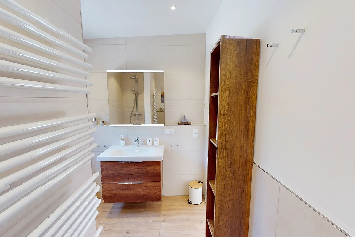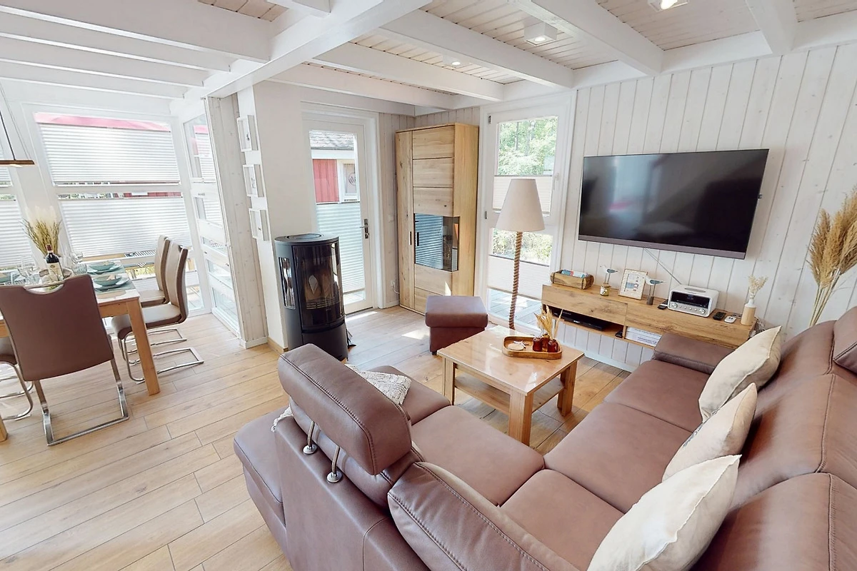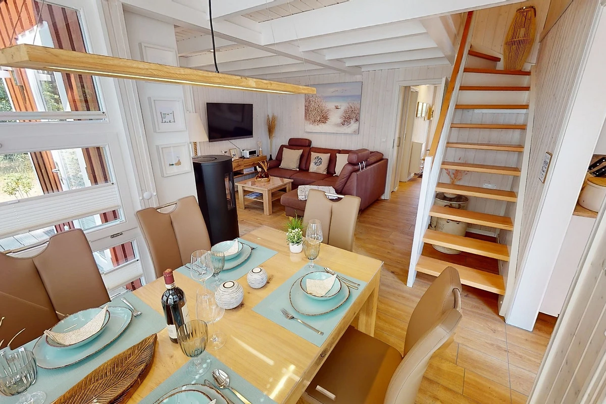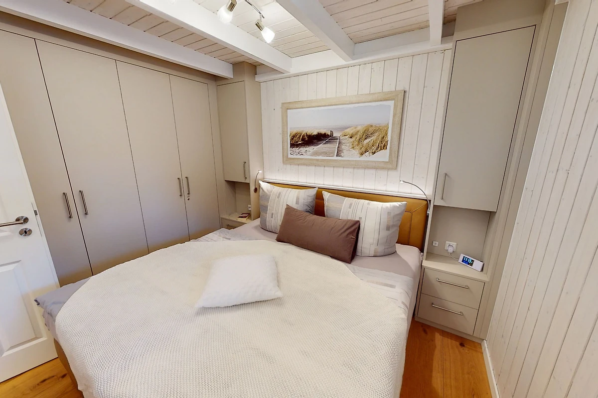 Sie geniessen ein gemeinsames Frühstück auf der Holzterrasse oder der lieber im verglasten Erker? Mit dem Meer im Hintergrund. Und danach eine Wanderung über die Halbinsel Mönchgut? Am Strand entlang oder durch den Wald? Oder doch lieber den Tag am wunderschönen, hellen Sandstrand geniessen? Im eigenen Strandkorb der Ihnen von Mai-Oktober zur Verfügung steht. Am Nachmittag können Sie in der voll ausgestatteten Einbauküche selber kochen oder sich in einem der zahllosen, gemütlichen Restaurants die Spezialitäten der Insel servieren lassen. Darf es frischer Fisch von der Ostsee sein, oder lieber Wild von der Insel? Einen entspannten Abschluss des Abends können Sie in der Sauna erlegen. Vor dem wohligen Kaminfeuer lesen oder die Kaminwärme oben im Erker bei einem Glas Rotwein auf sich wirken und den Tag noch einmal gemeinsam Revue passieren lassen? Und das zu jeder Jahreszeit, denn auch ein verschneiter Wintertag hat auf Rügen seinen ganz besonderen Reiz.