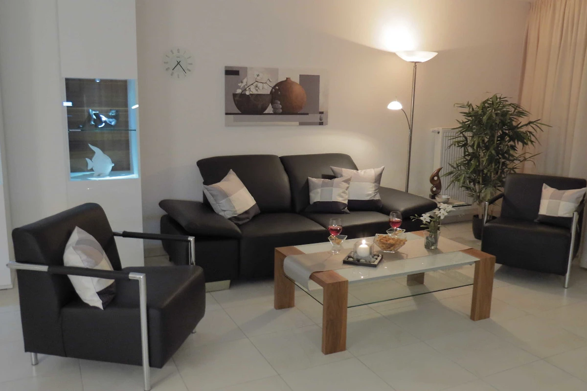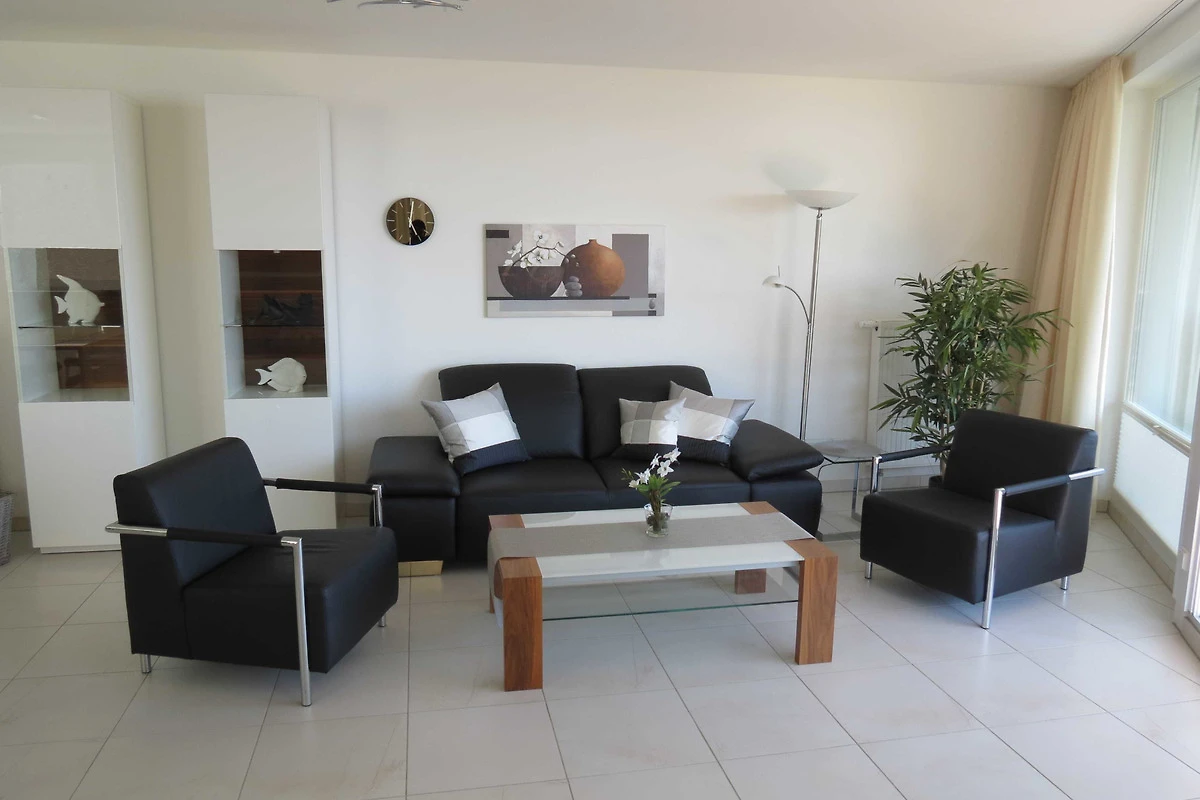 Geniessen Sie die Sonne und das milde, maritime Klima von unserem mit Relax-Stühlen und Liegen ausgestatteten grossen, teilweise überdachten Balkon. Der grosse, helle Wohnraum mit Kaminofen, der Essbereich mit offener, komplett eingerichteter und viel Stauraum versehener Küche sowie die zwei Schlafräume, jedes mit einem Doppelbett, sind modern, hochwertig und liebevoll eingerichtet. Ausgestattet mit Waschmaschine, Kondenstrockner, Mikrowelle, Induktionsherd, Backofen, Geschirrspüler, Mixer, Kaffeemaschine, Wasserkocher, Kühlschrank mit Tiefkühlfach, Fön, Bügeleisen mit Bügelbrett, Minisafe, Kinderreisebett, Kinderhochstuhl bietet die Wohnung eine aussergewöhnlich komplette Ausstattung.