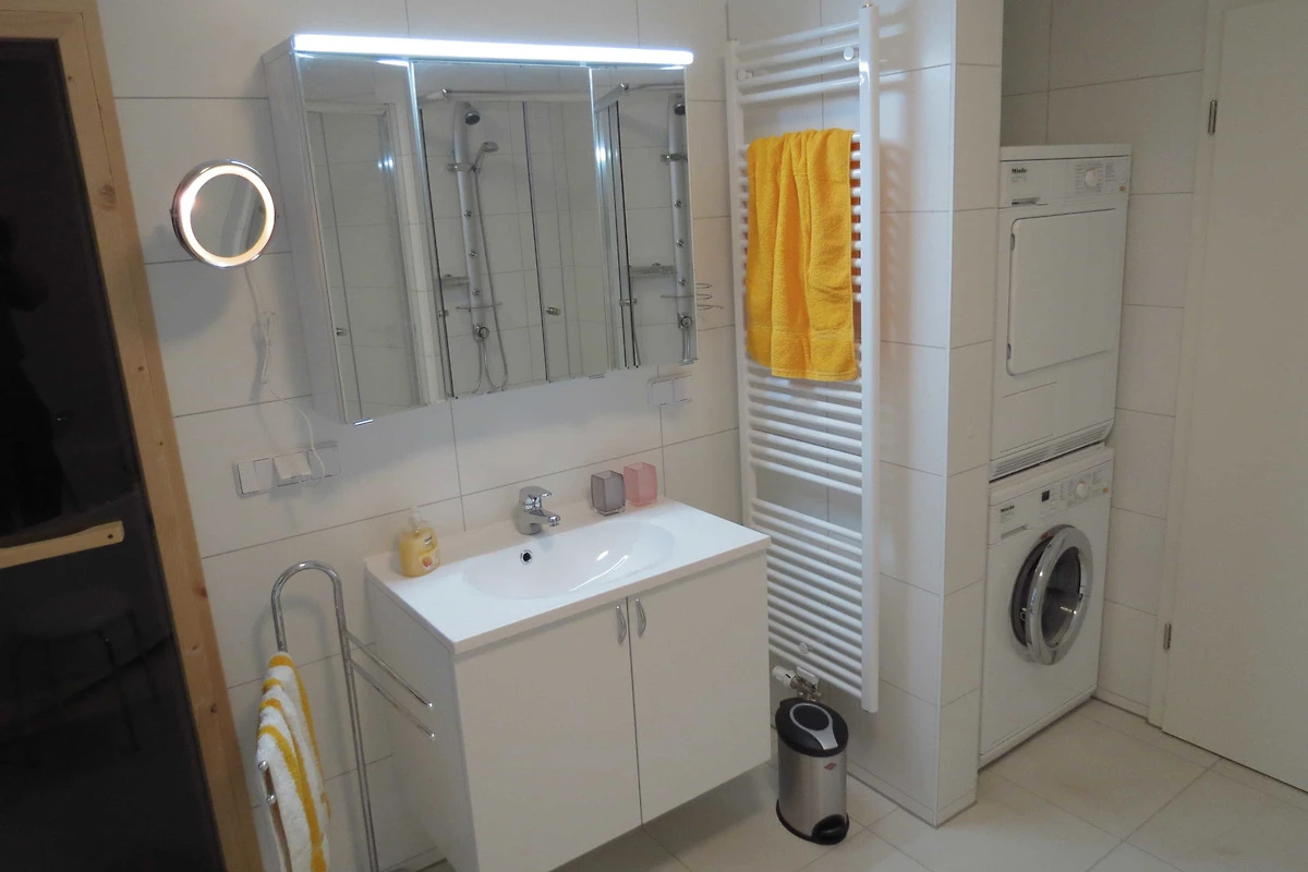 Der grosszügige Wellnessbereich mit Whirlpool und Sauna genügt selbst gehobenen Ansprüchen. Ein Gäste-WC mit Waschtisch ist ebenfalls vorhanden. Zu Ihrer Unterhaltung finden Sie einen grossen Flachbildfernseher im Wohnzimmer mit Stereoanlage und CD/DVD-Player sowie einen Flachbildfernseher mit Blu-Ray-Player im Schlafzimmer. Unseren Gästen steht ein WLAN-Anschluss kostenfrei zur Verfügung.