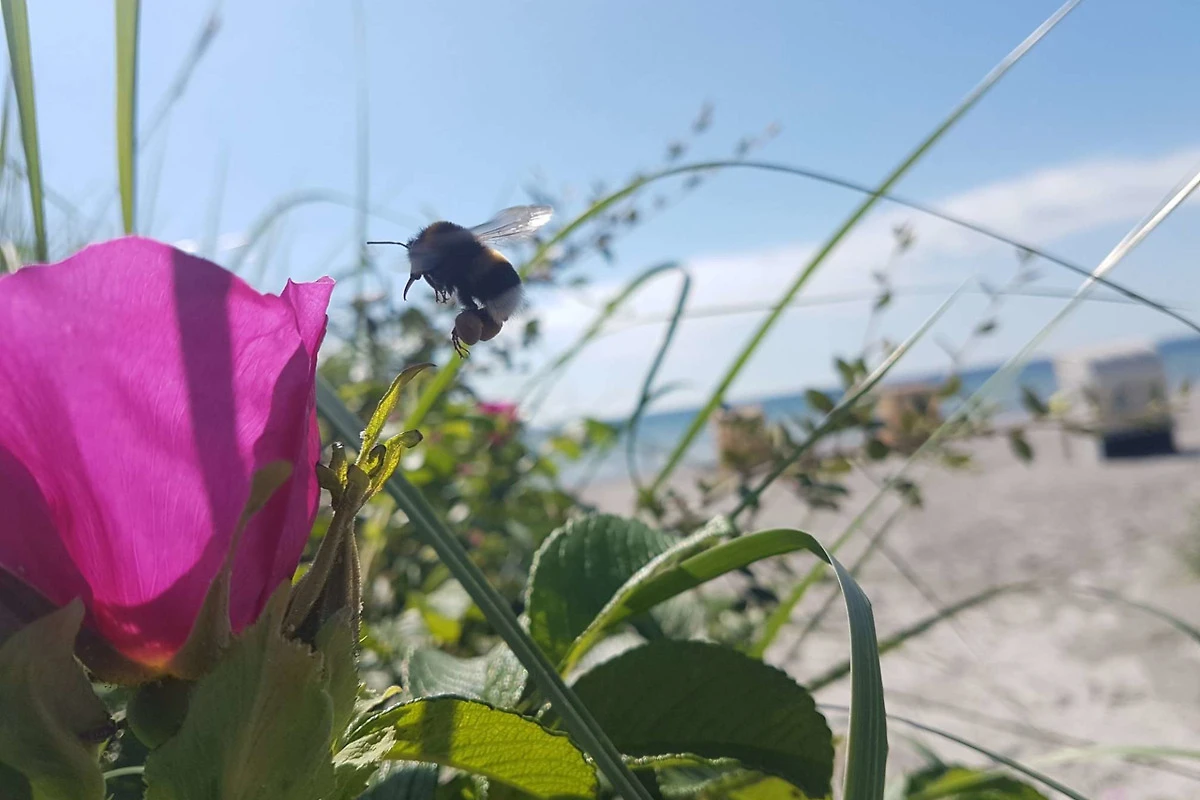Der feinsandige Südstrand ist nur ca. 150 Meter entfernt. In der Zeit von Mai bis September steht dort unser Strandkorb zur Verfügung. So können Sie jederzeit entscheiden, ob Sie den Tag im Strandkorb mit Blick auf die Ostsee oder in einem der Cafés oder Restaurants verbringen möchten.