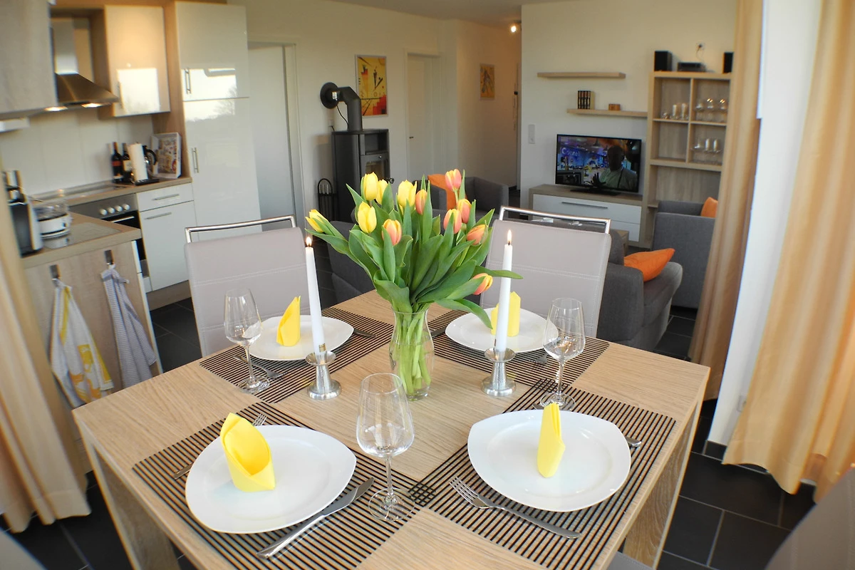 Die Küche ist modern eingerichtet und verfügt über alle wichtigen Geräte, damit Sie während Ihres Aufenthaltes Ihre Kochfantasien frei ausleben können. Ein Esstisch bietet Platz für 4 Personen.