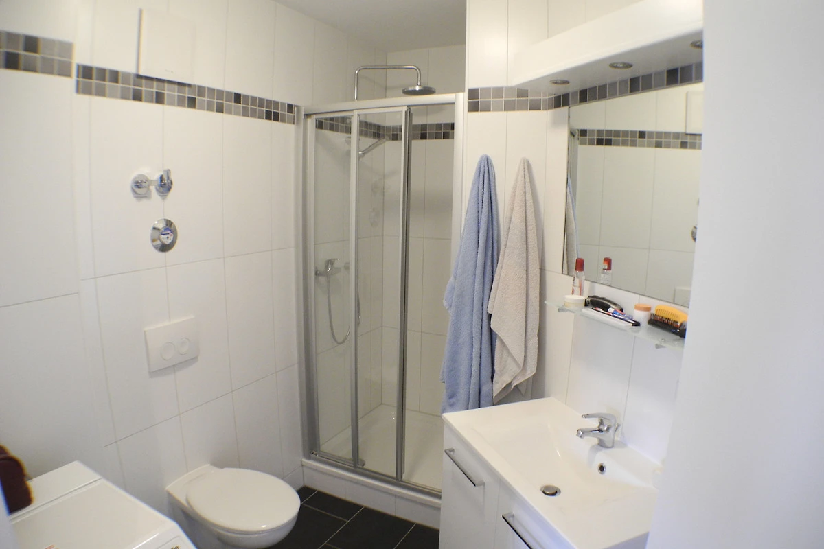 Das Badezimmer ist mit einer Dusche und einer Waschmaschine ausgestattet!