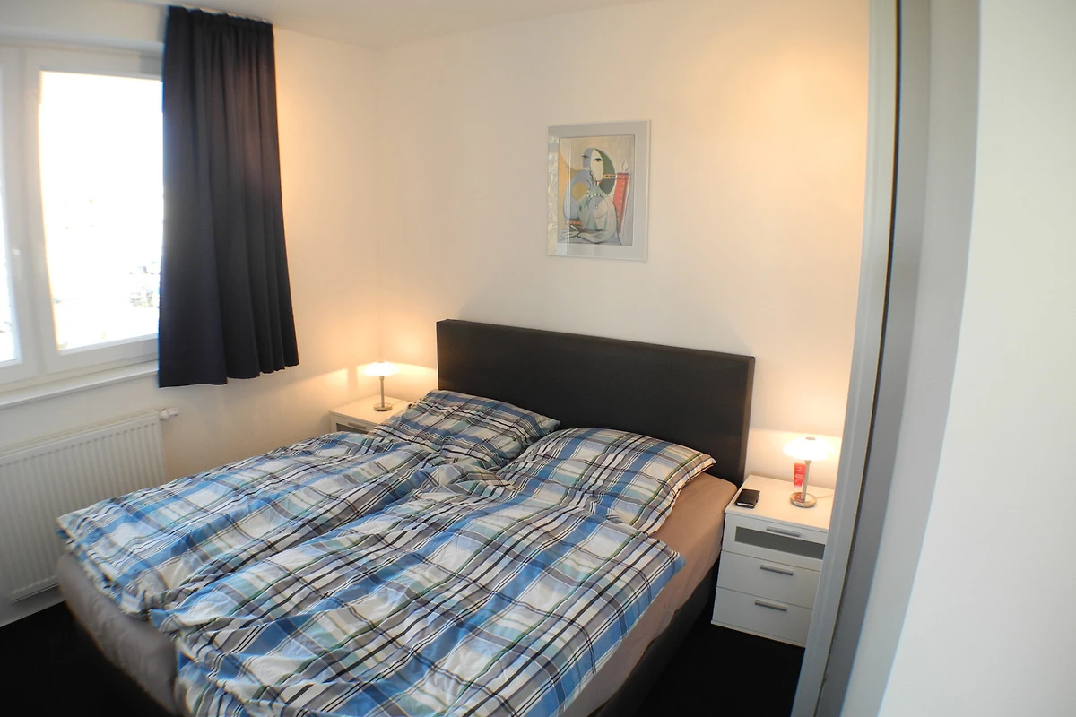 Unsere Wohnung ist ausgestattet mit zwei Schlafzimmern. Im ersten Schlafzimmer befindet sich ein Doppelbett, im weiteren Zimmer ein Kojenbett. Auf den sehr bequemen Matratzen ist Ihnen ein erholsamer Schlaf garantiert, um am nächsten Morgen frisch und ausgeschlafen in den Tag starten zu können.
