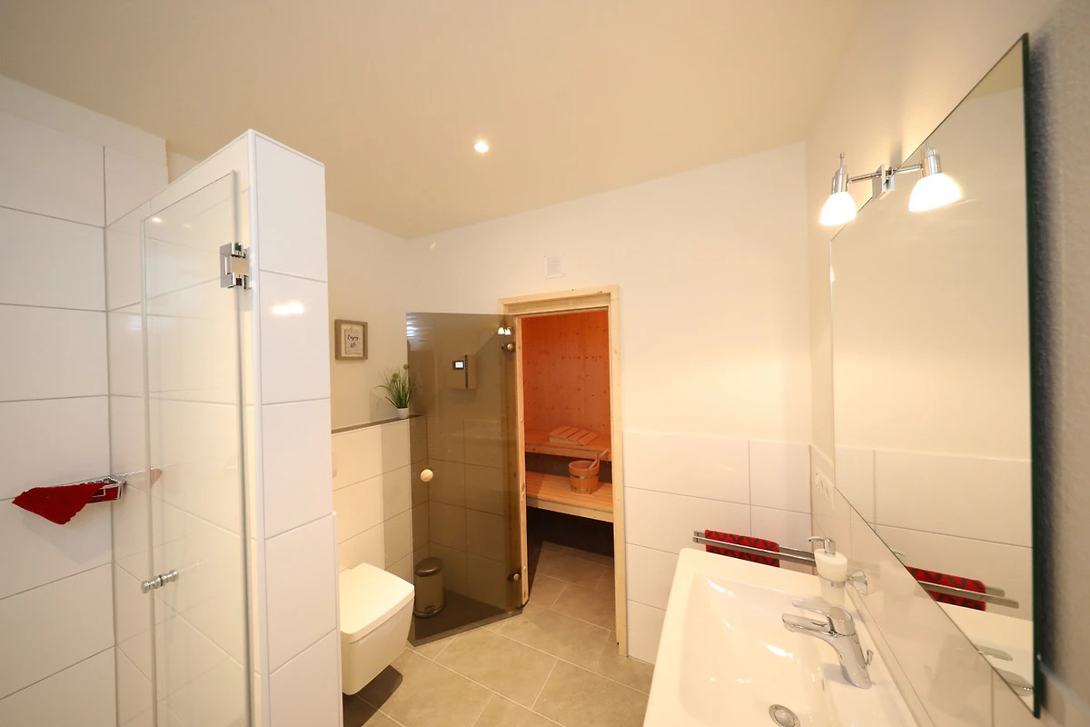 Nach einem schönen Tag am Strand, können Sie am Abend in Ihren privaten Sauna verweilen, die sich in Ihrem Bad befindet und den Tag auf dem Balkon ausklingen lassen.