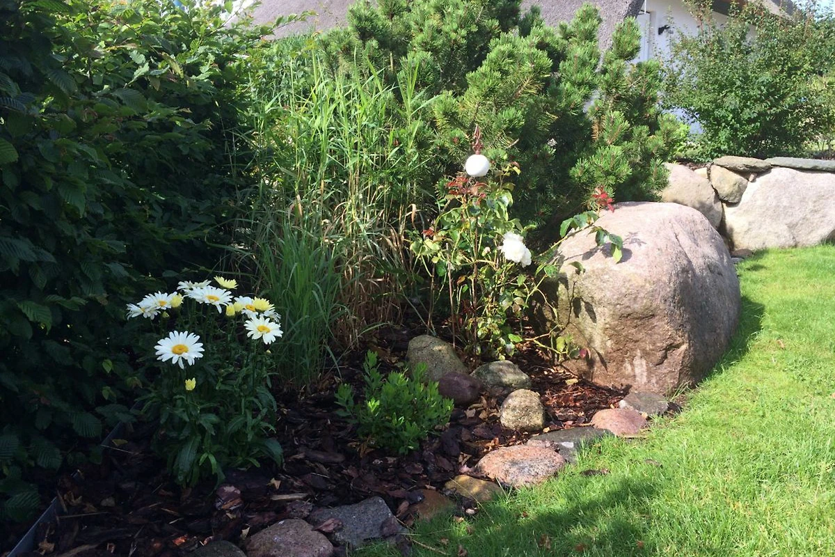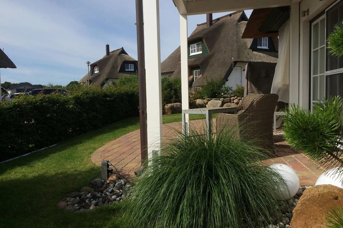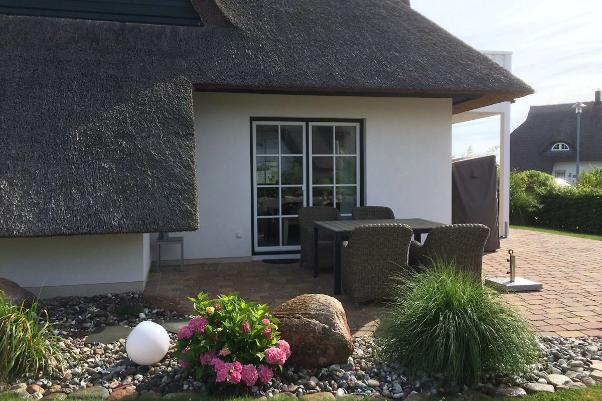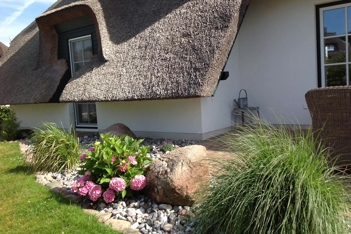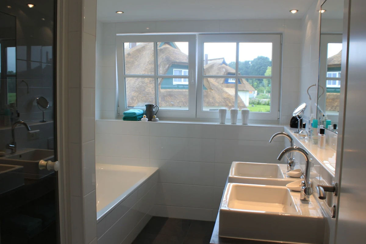 Im 115 qm grossen, geräumigen und sonnendurchfluteten Reethaus befindet sich im EG eine gut ausgestattete Küche mit Blick auf die Essecke und das Wohnzimmer mit Kaminofen und Flachbild-TV, ein behagliches Schlafzimmer, Sauna und Badezimmer mit Dusche.