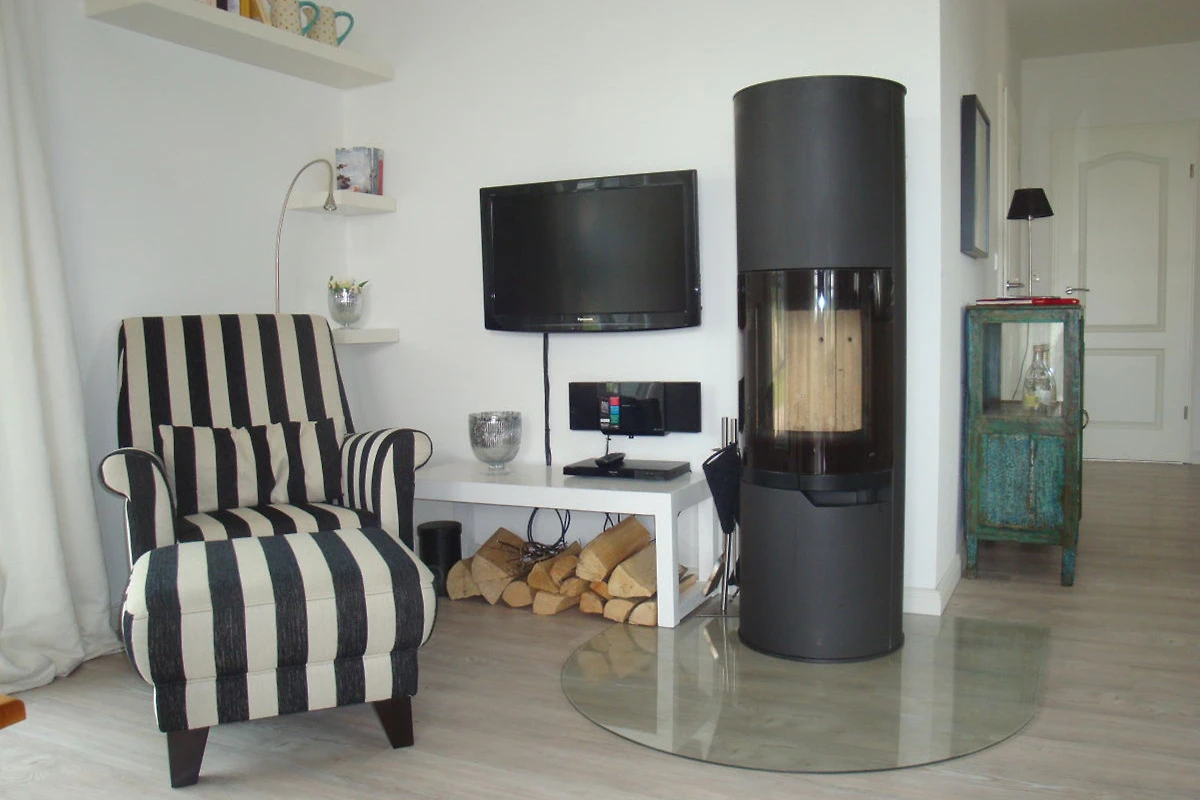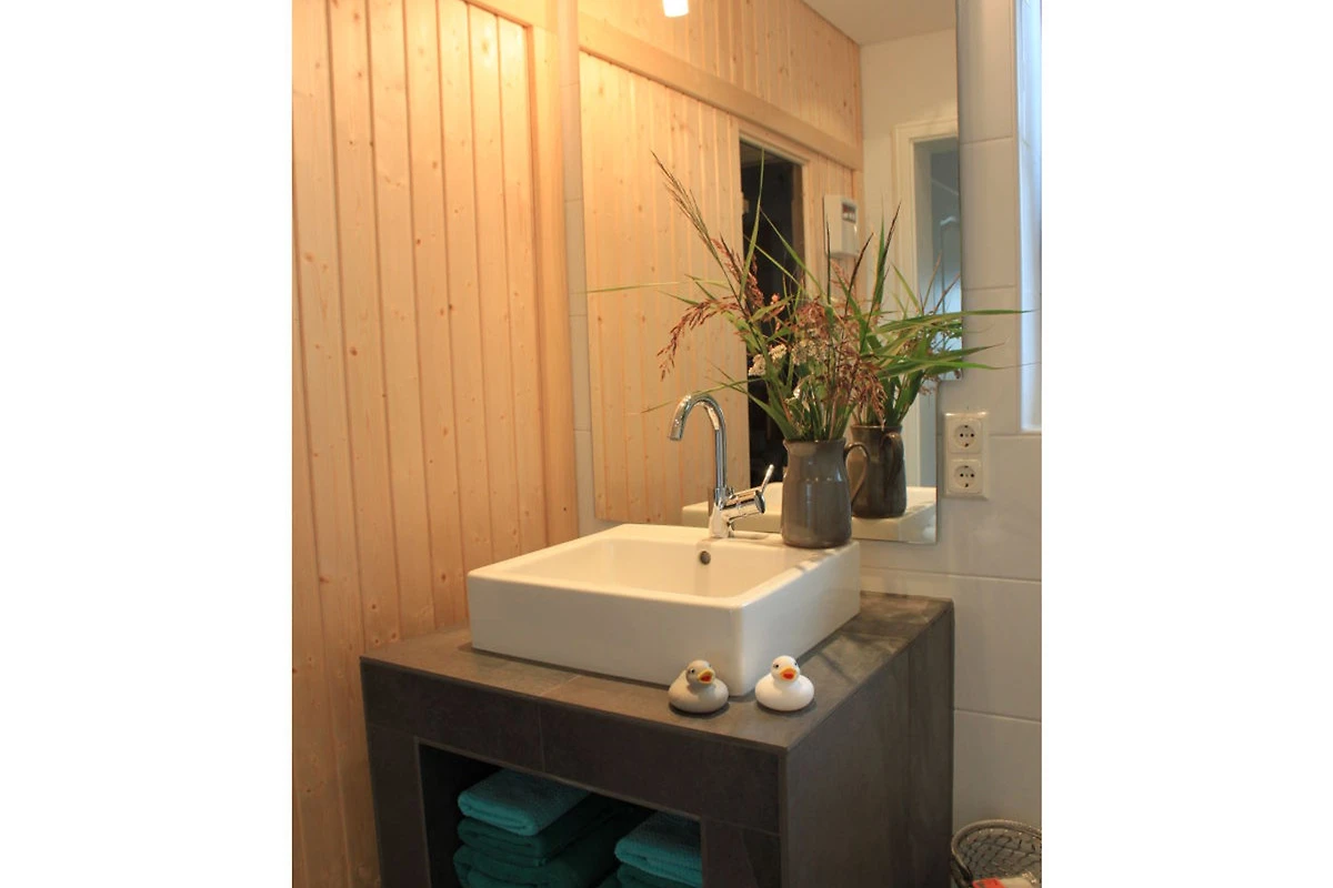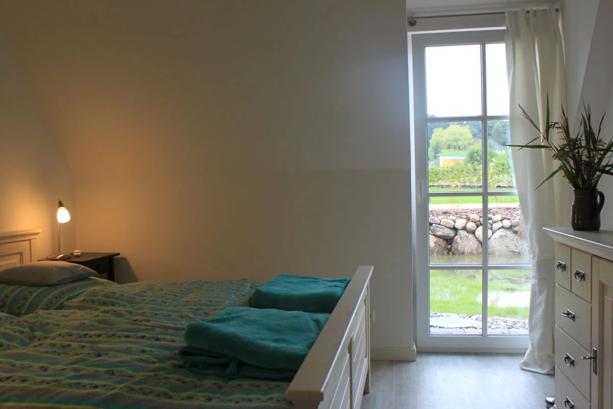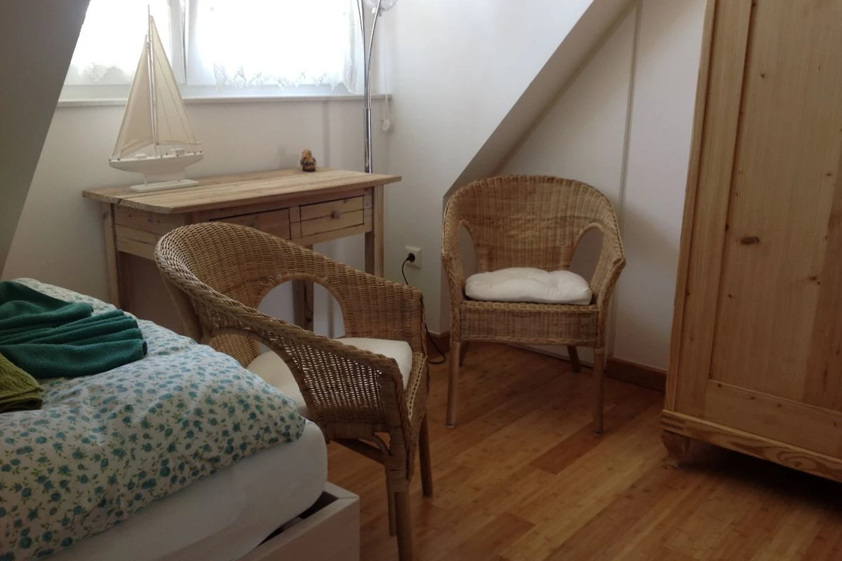 Jeder Raum ist mit einem Flachbildschirm und gemütlichen Sitzgelegenheiten ausgestattet. Das "Gartenzimmer" im Erdgeschoss hat einen direkten Zugang zu Garten und Terrasse. Für gesellige Grillabende steht ein Weber-Elektrogrill für Sie bereit. Das Familienzimmer im Obergeschoss verfügt über einen grossen Balkon mit Blick auf das Achterwasser, einen Ohrensessel zum relaxen, einen kleinen Schreibtisch und einem Kinderbettchen, das Schlafzimmer daneben verfügt über zwei Einzellbetten, die auch zusammen gestellt werden können.