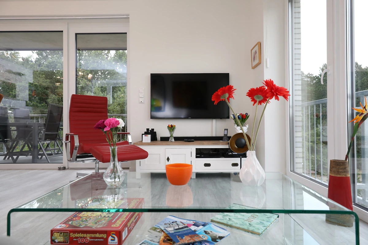 Geniessen Sie Ihren Urlaub und die Vorzüge dieser 76 m² grossen Neubauwohnung. Ein gemeinsames Frühstück auf dem Balkon ist der perfekte Start in den Tag. Die hochwertige und überdurchschnittlich ausgestattete Küche inklusive Kochutensilien und Fischbesteck, sowie der geräumige Wohn- und Essbereich lassen keine Wünsche offen. Abends können Sie in Ihrer eigenen Sauna entspannen, oder Sie lassen den Tag bei einem Glas Wein in der gemütlichen Sitzecke ausklingen.