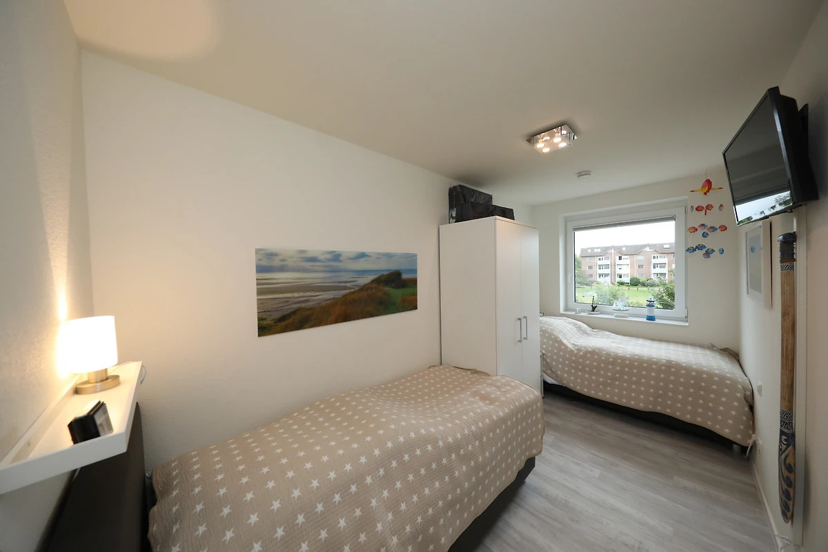 Die Wohnung verfügt über zwei Schlafzimmer mit insgesamt 4 Schlafmöglichkeiten. In einem der Schlafzimmer finden Sie ein grosses Doppelbett, in dem anderen stehen 2 Einzelbetten bereit.