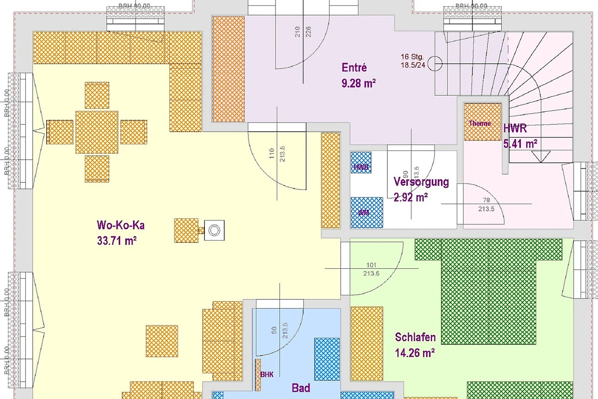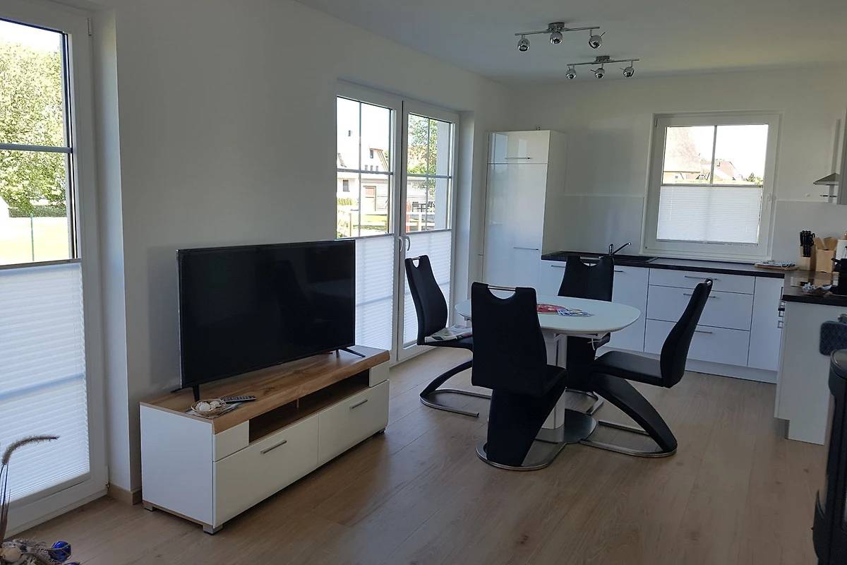 Grill, Waschmaschine sowie Wäschespinne und Bollerwagen werden ebenfalls von beiden Wohnungen gemeinsam genutzt. Vor den Fenstern in den Bädern und im Schlafzimmer, sowie in der Küche befinden sich Insektenschutzgitter.