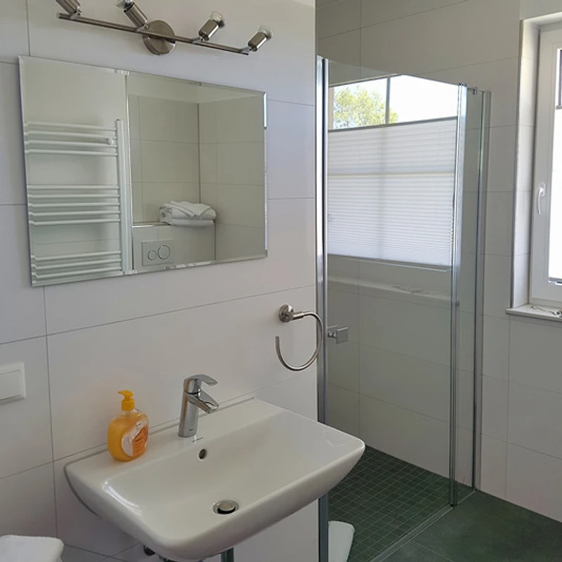 Im Winter vor dem knisterndem Feuer des Kaminofens ein Glas Rotwein oder eine Tasse Tee geniessen und im Sommer auf der Terrasse frühstücken, das ist Erholung pur! Zudem ist die Wohnung allergikerfreundlich eingerichtet. Das Bad in der Ferienwohnung Schatzkästchen ist geeignet für die Nutzung eines Rollators, denn es ist mit einer grossen Dusche ausgestattet (1,20m x 1,20m) und hat keine Schwellen.