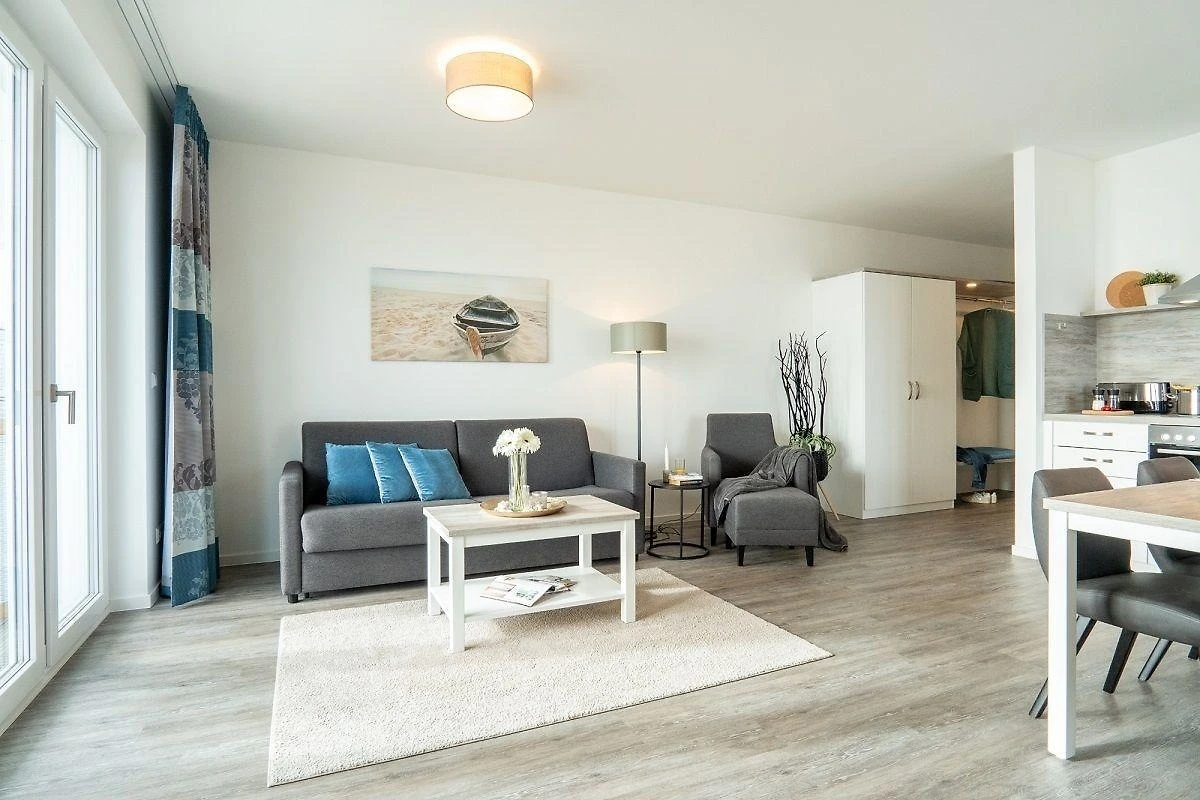 Willkommen in der Meerblickvilla - näher ans Meer geht es kaum. Die Wohnung 41 befindet sich in der dritten Etage und verfügt über zwei Zimmer auf ca. 68 m² - aufgeteilt auf ein Schlafzimmer, ein Duschbad und den lichtdurchfluteten Wohn- und Essbereich mit angrenzender Küchenzeile.