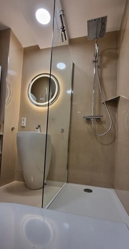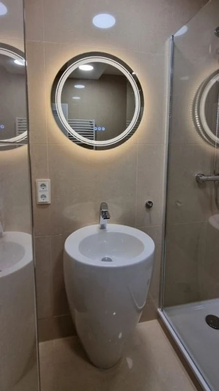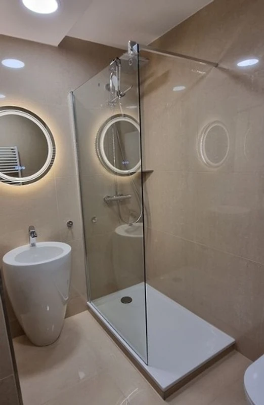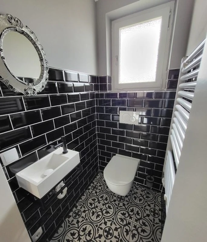 Im Badezimmer finden Sie die Walk-in Dusche und Alessi-Waschtisch. Zusätzlich gibt es einen weiteren Gäste-WC im Retrostil.