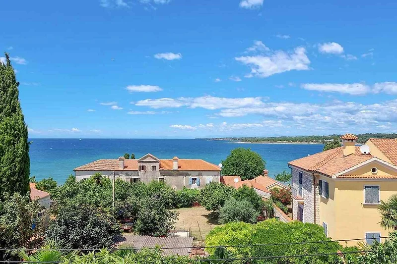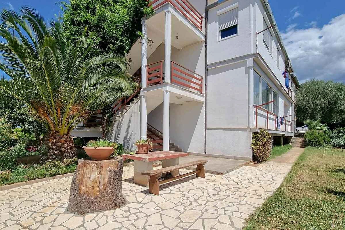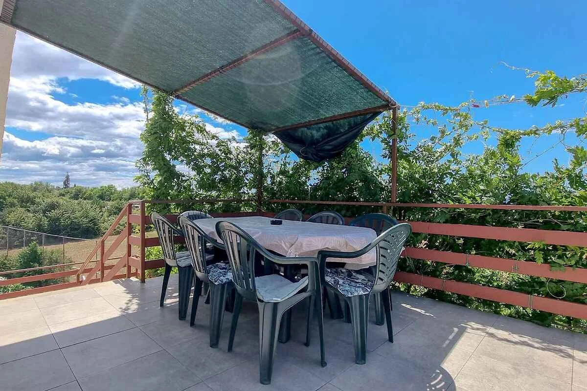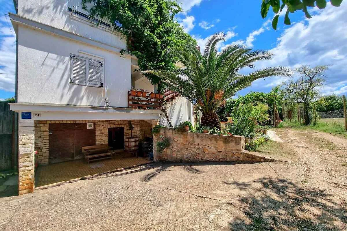 Novigrad, Ortsteil Dajla. Die Ferienwohnung befindet sich auf einem Gartengrundstück mit Wiese und Bäumen. Der Vermieter wohnt ständig im Haus, nutzt jedoch einen separaten Eingang. Die Zufahrt erfolgt über eine Nebenstrasse (asphaltiert). Parkplatz (für 4 Pkws) auf dem Grundstück.