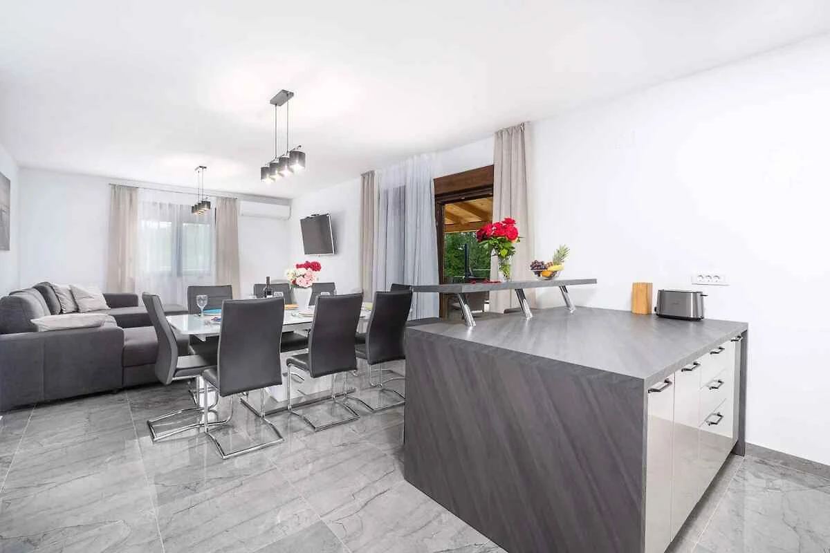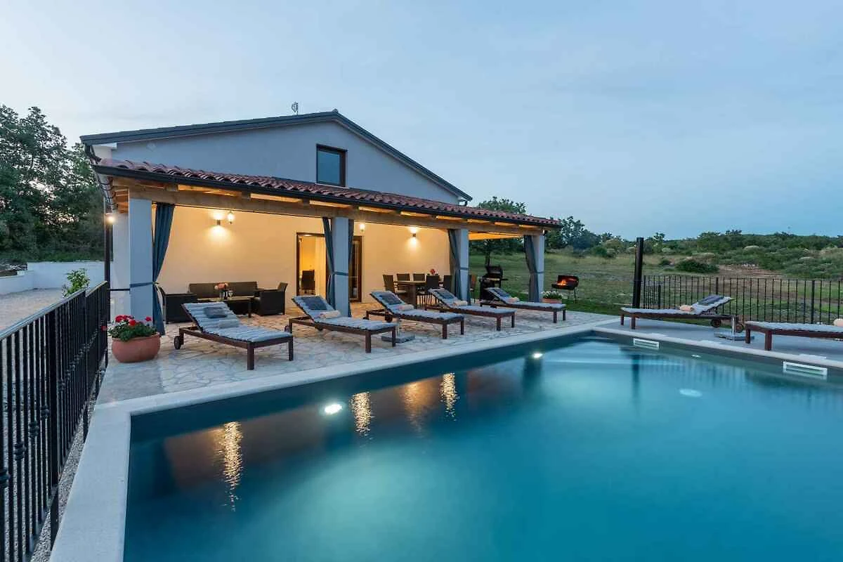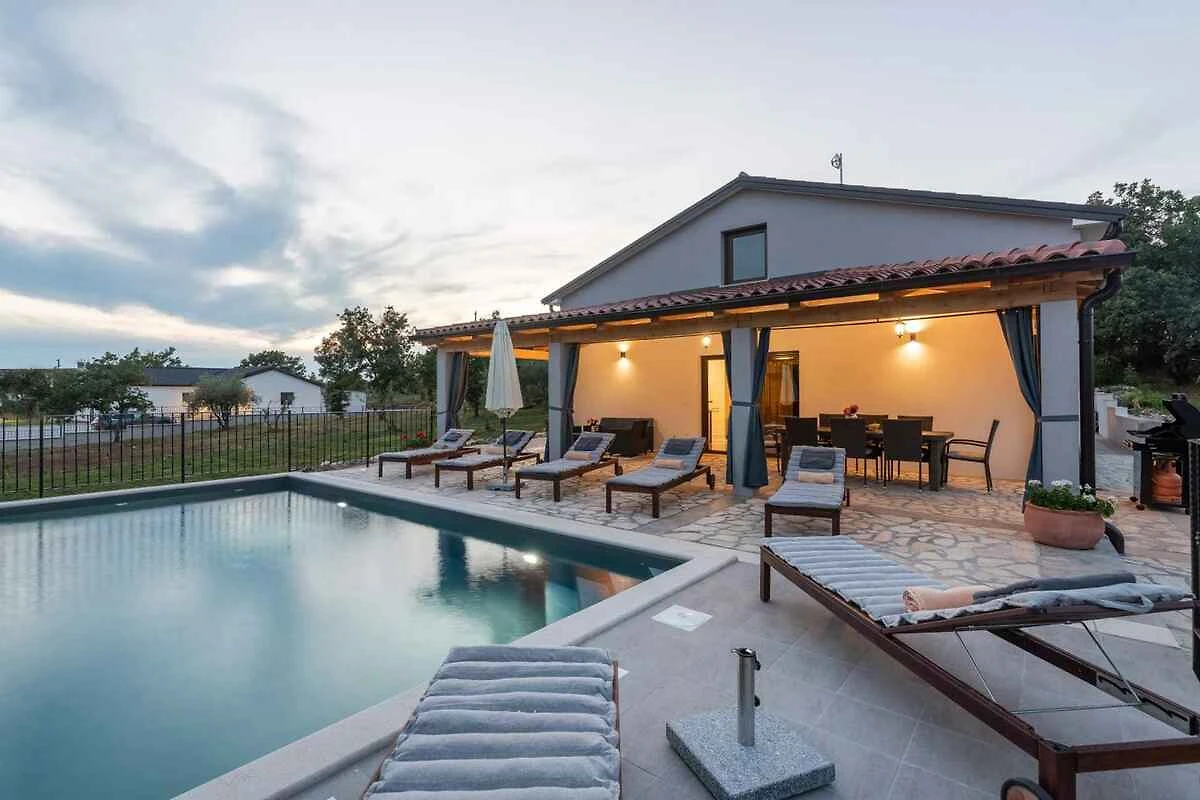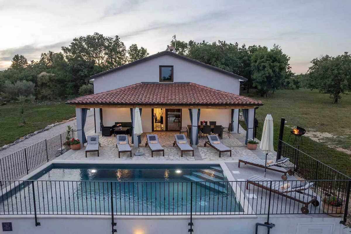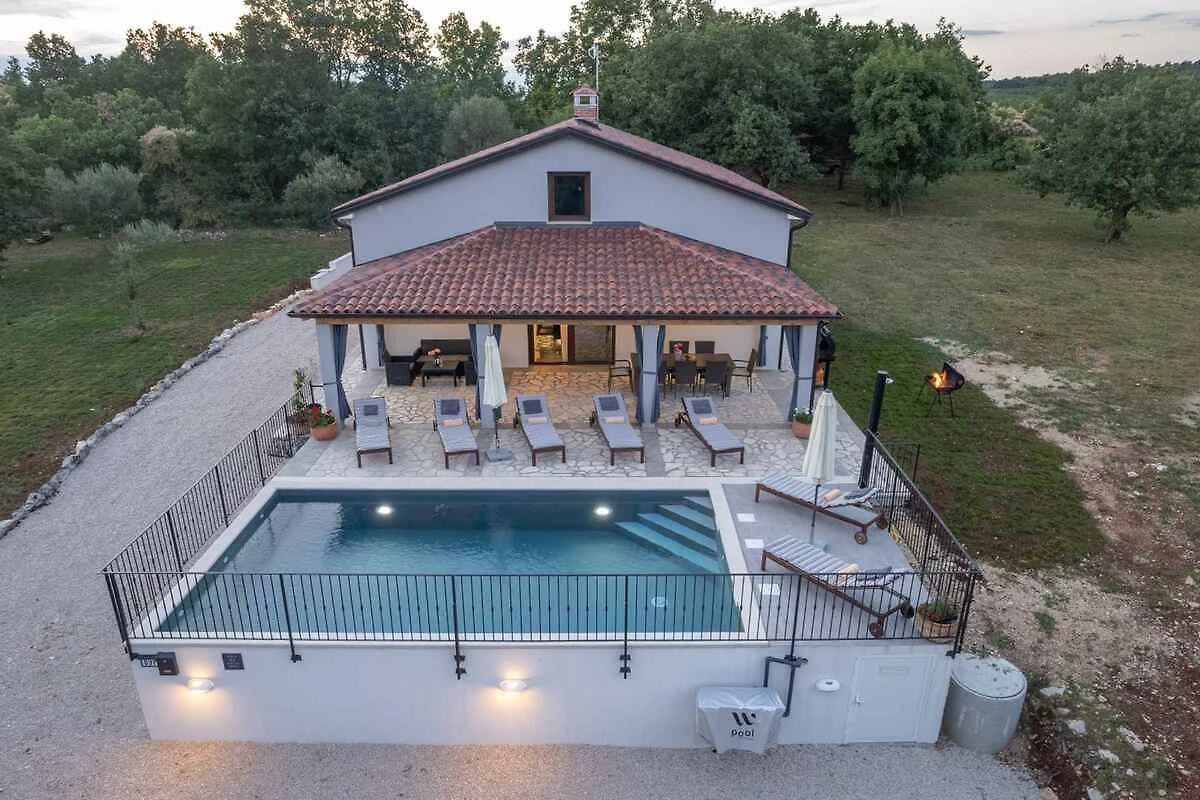 Die einzeln stehende Villa ist modern und luxuriös eingerichtet. Das Grundstück befindet sich auf einem Bauernhof. Auch wegen der sonnigen und abgeschiedenen Lage am Waldrand ist das Domizil beliebt. Zur Nutzung stehen zur Verfügung: Sonnenschirm, Sonnenliege, Grillmöglichkeit, Terrasse und Gartenmöbel.