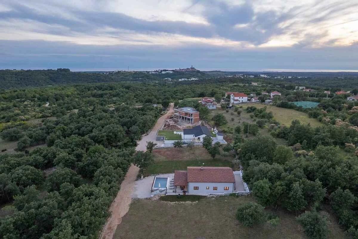 Buje, Ortsteil Buje. Die Villa befindet sich auf einem Bauernhof, auf einem geschlossenen Gartengrundstück mit Wiese und Bäumen, von einem Zaun begrenzt. Der Vermieter wohnt nicht im Haus oder auf dem Grundstück. Die Zufahrt erfolgt über eine Nebenstrasse (unbefestigt). Parkplatz (für 5 Pkws) auf dem Grundstück.