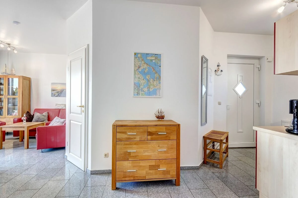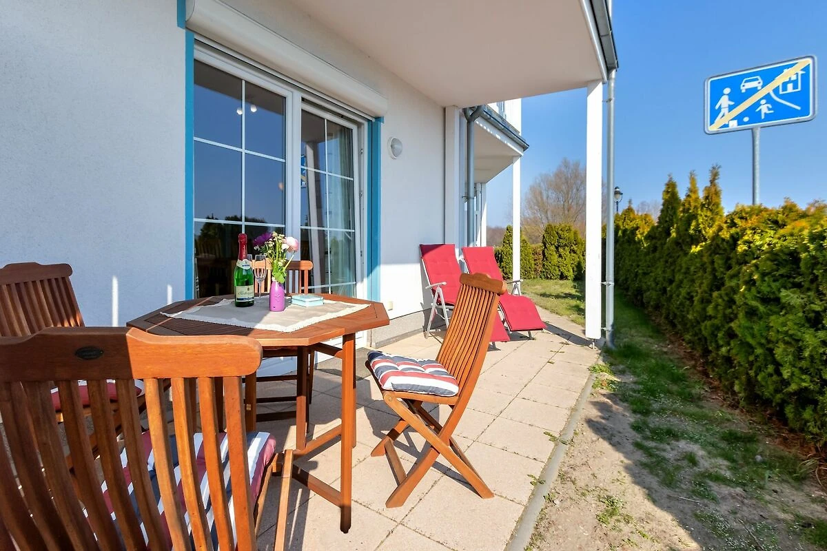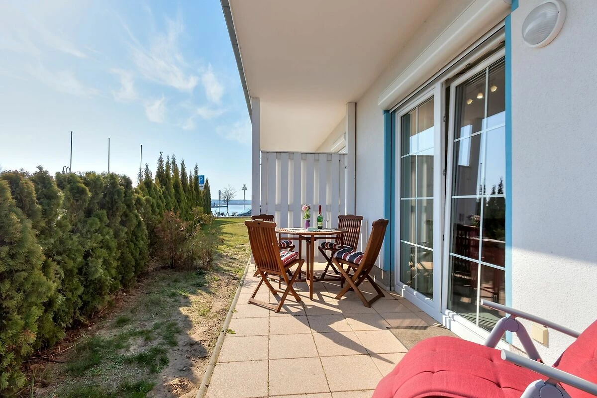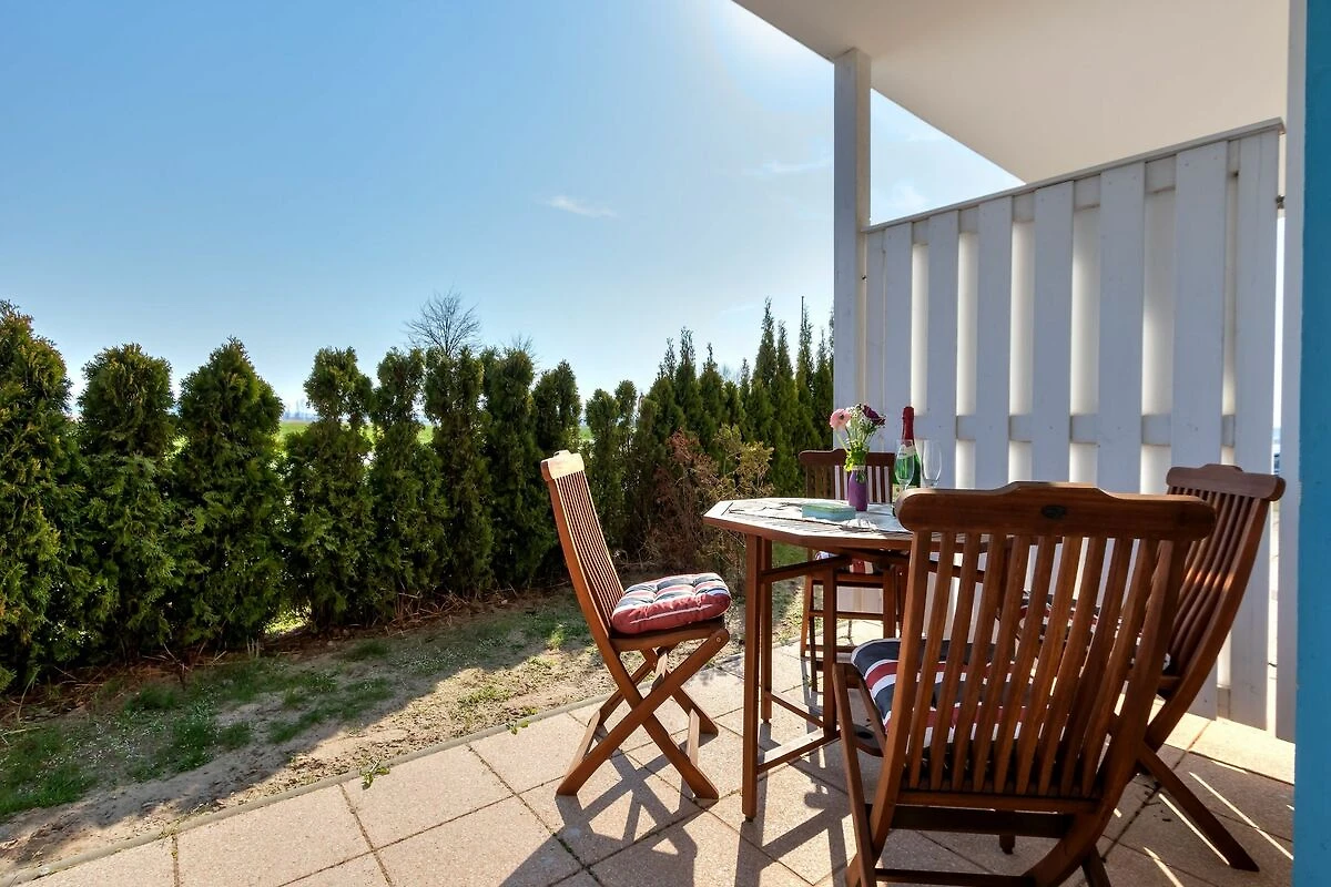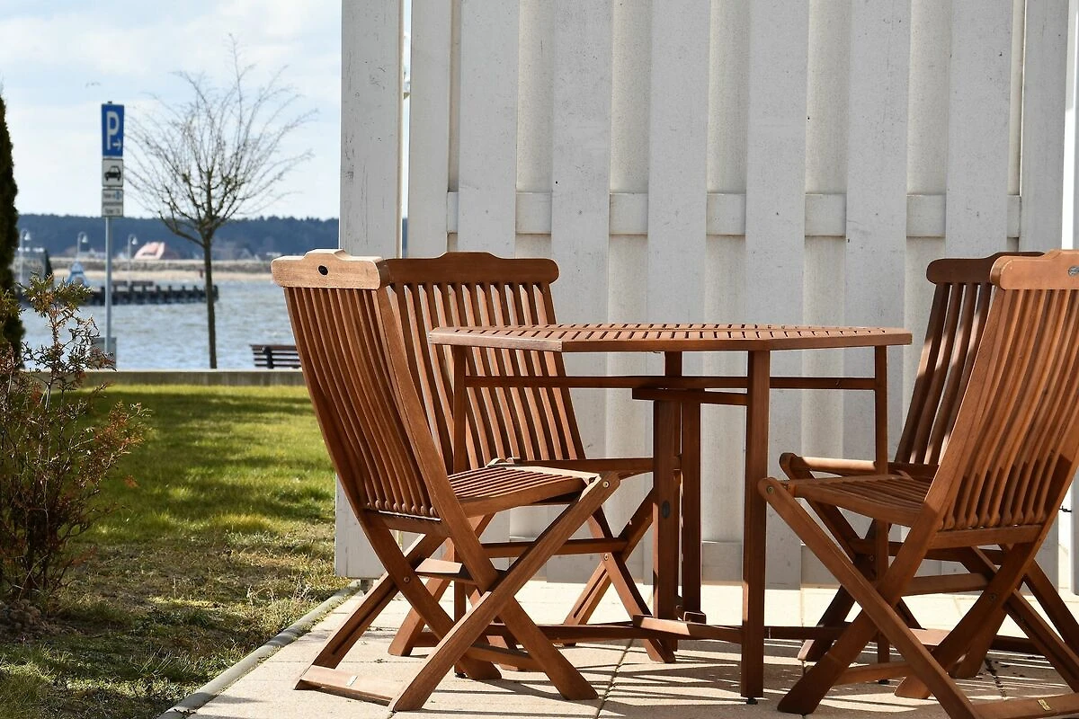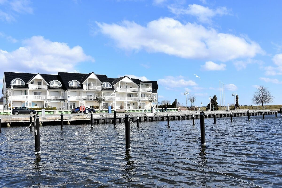 Die Wohnung befindet sich im Erdgeschoss und verfügt über eine grosse, nach Süden ausgerichtete, Terrasse. Geniessen Sie den einzigartigen Blick vom Aussenbereich auf das Treiben und die Segelboote im Yachthafen des Ostseebades Karlshagen, wie auch auf die ausgedehnten Peenewiesen.