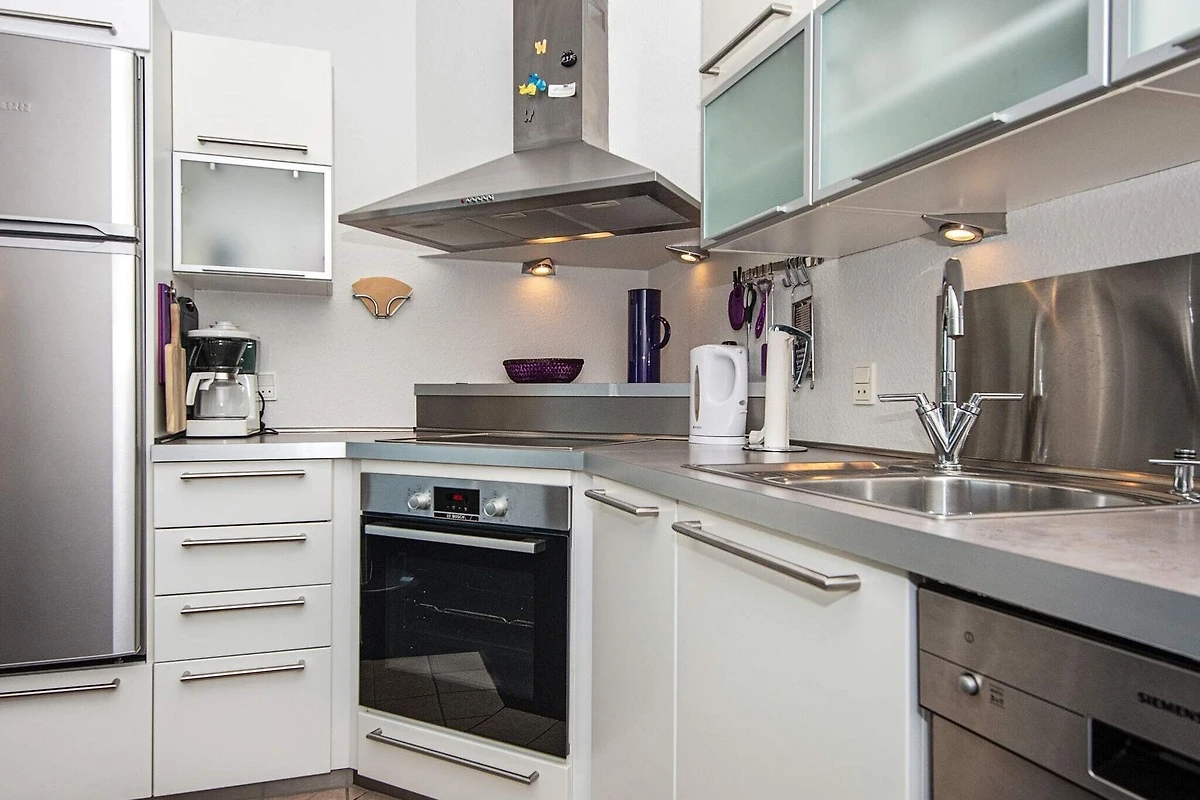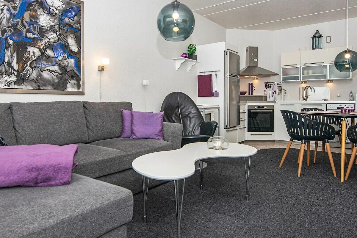 , Küche(Kochherd(elektrisch), Dunstabzugshaube, Kaffeemaschine, Mikrowelle, Spülmaschine, Kühl-/Gefrierkombination), Wohn-/Schlafzimmer(Doppelklappbett , TV(Deutsch Fernsehsender, dänische Fernsehsender)), Schlafzimmer(2x Einzelbett), Badezimmer(Fußbodenheizung)(Waschbecken, Dusche, Toilette), Sauna(Gemeinschaftliche Nutzung mit anderen Gästen, im Innenbereich), Balkon, Pool(Gemeinschaftliche Nutzung mit anderen Gästen, im Garten), Pool(Gemeinschaftliche Nutzung mit anderen Gästen, im Innenbereich)