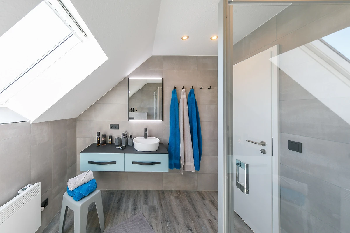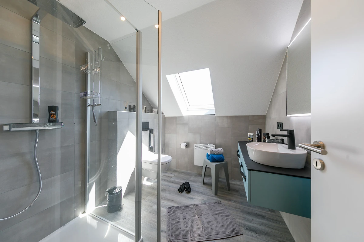 1 Duschbad mit ebenerdiger Regendusche und Föhn