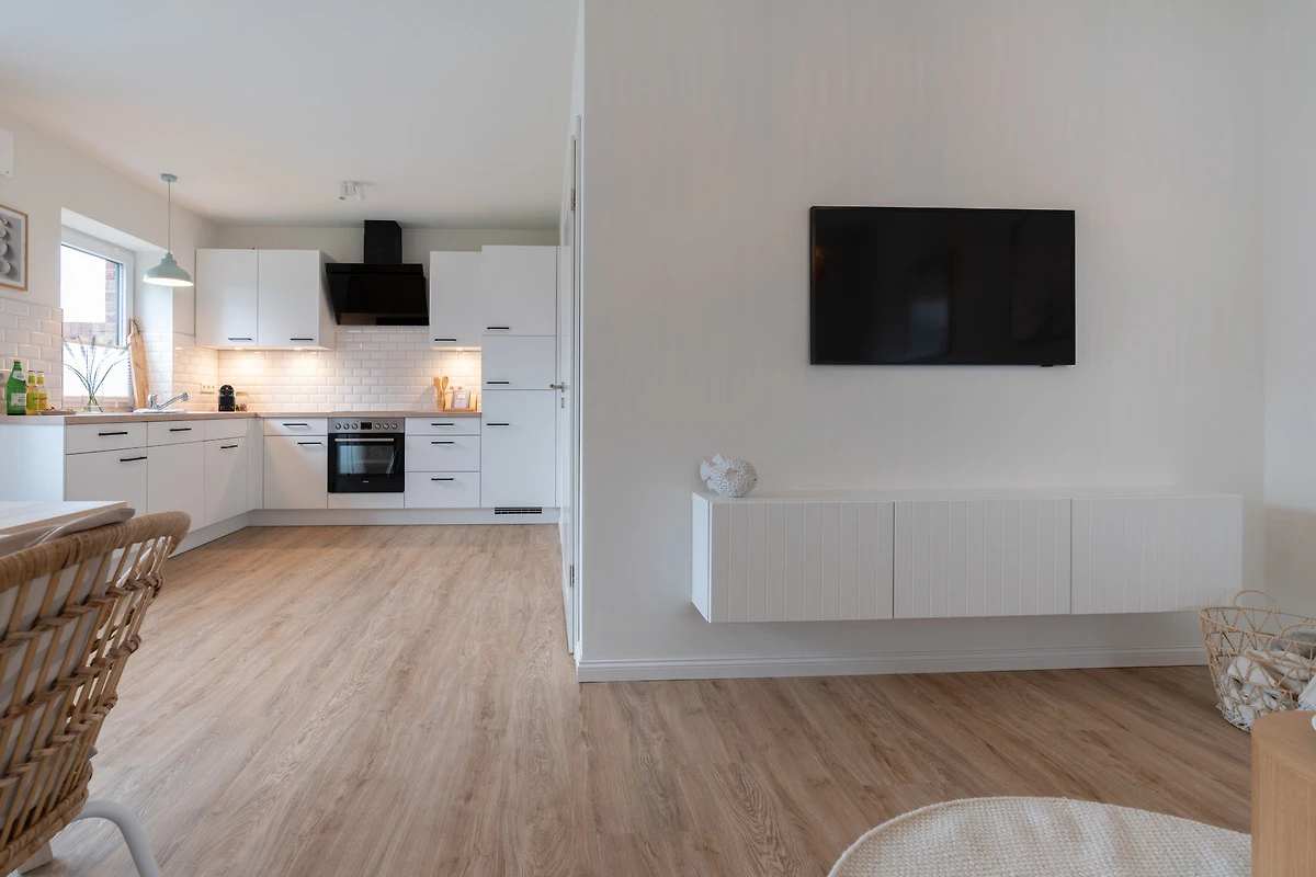 Die komplette Butze ist mit einer Fussbodenheizung ausgestattet, so dass du auch an kühlen Tagen keine kalten Füsse bekommst. Auch für Unterhaltung ist gesorgt - die TV-Geräte im Wohn- und Schlafzimmer 1 enthalten auch Netflix und weitere Mediatheken.