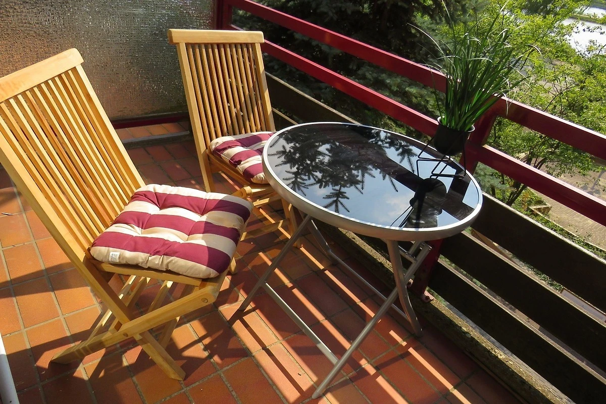 Die Ferienwohnung bietet einen einladenden Balkon, der zum Entspannen und Verweilen einlädt. Hier kann die frische Luft genossen werden, während die Umgebung erkundet wird. Ideal, um den Tag ausklingen zu lassen oder den Morgen mit einem Frühstück im Freien zu beginnen. Ein perfekter Ort für unvergessliche Momente.