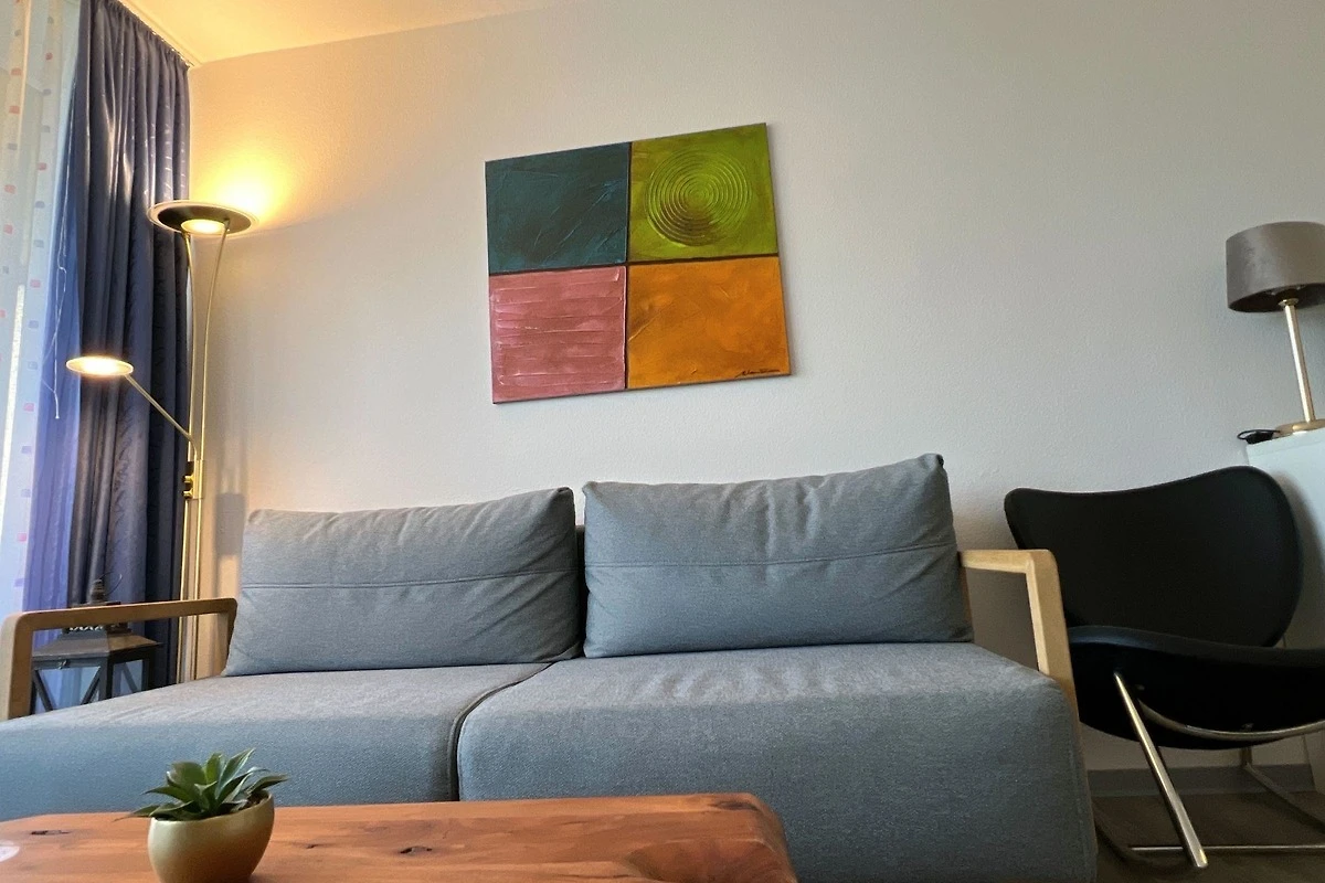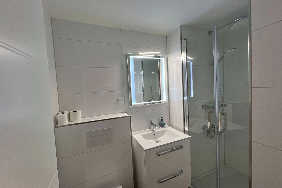 In der gemütlichen Ferienwohnung erwartet die Gäste ein ansprechendes Ambiente mit durchdachter Ausstattung. Ein Schlafzimmer mit einem komfortablen Doppelbett sorgt für erholsamen Schlaf. Im modernen Badezimmer steht ein Duschbad zur Verfügung, ausgestattet mit einem Haartrockner. Die Küche bietet alles, was für die Zubereitung von Mahlzeiten benötigt wird, darunter ein Backofen, Kühlschrank, Kaffeemaschine, Wasserkocher, Toaster und eine Gefriermöglichkeit.