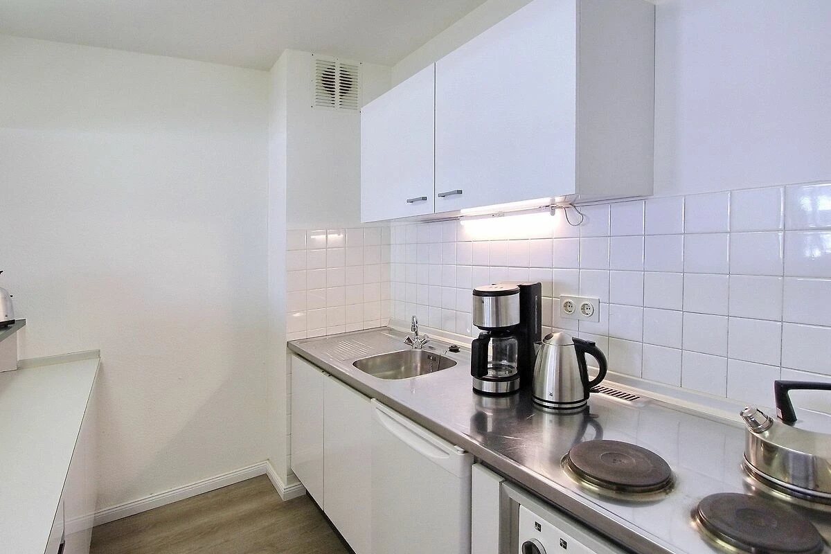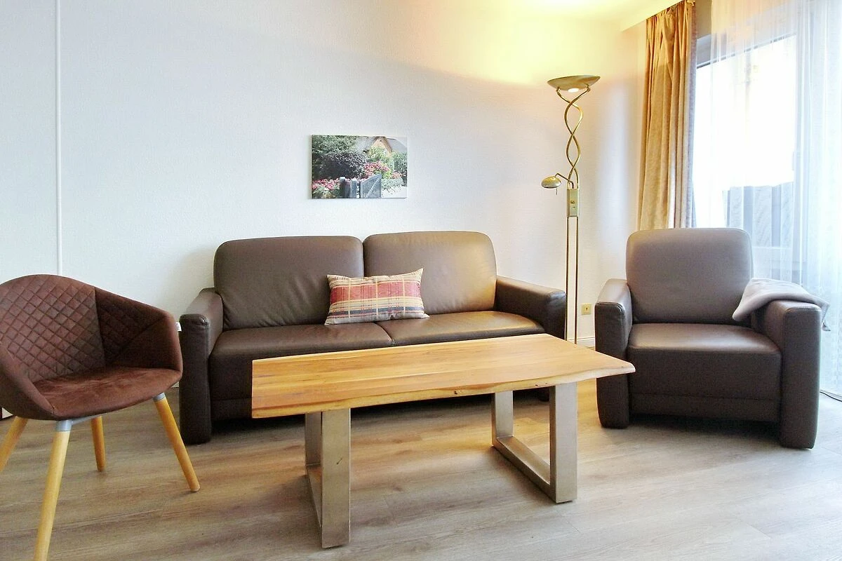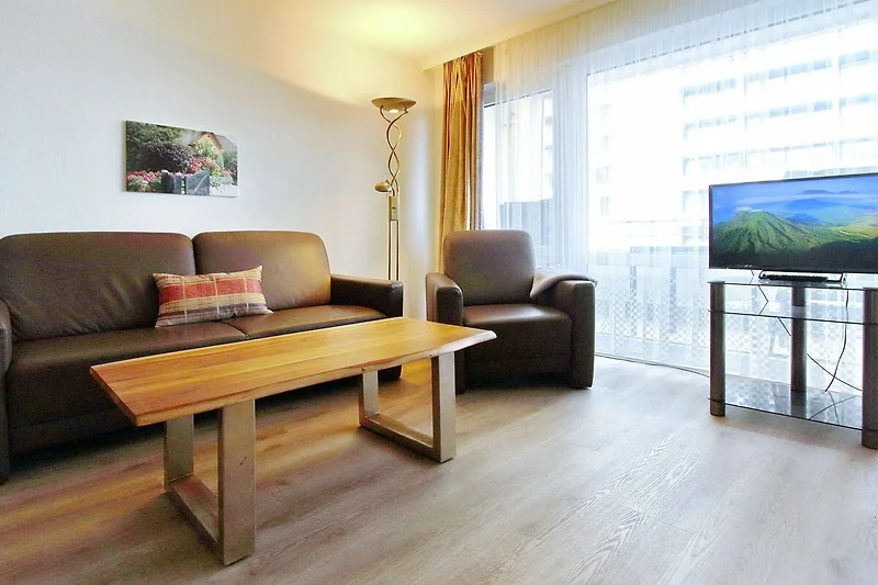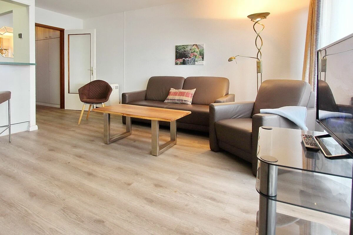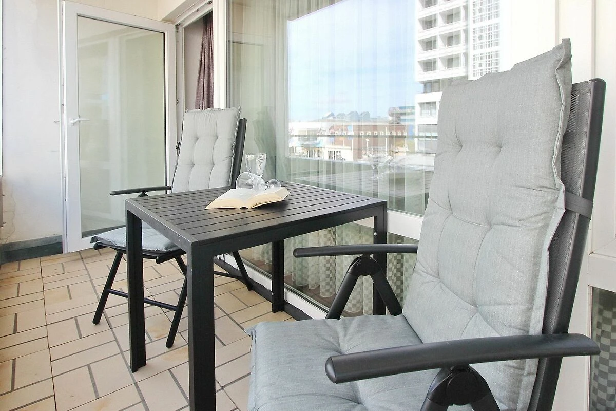 Das 1 Zimmer Appartement in der 2. Etage im Haus Westerhörn liegt nur wenige Schritte vom Strand und Meer entfernt. Der helle, mit bodentiefen Fenstern, ausgestattete Wohn-/Schlafraum mit vorgelagertem Westbalkon (Balkonmöbel sind vorhanden) verfügt über Einzelschrankbetten und eine Ledersitzgruppe und 2 Stühle. Die zum Raum offene Küchenbar (mit Backofen) verfügt über einen Esstresen mit Lederbarhockern an denen Sie Ihre Mahlzeiten zu sich nehmen. Designfussboden in Holzdielenoptik wurde verlegt. Das Badezimmer hat eine Badewanne mit Duschvorhang und ein Fenster zur direkten Belüftung. Zur technischen Ausstattung dieser Wohnung gehört: ein moderner Flachbildfernseher von Panasonic und ein Radio. Wohnungsgrösse: ca. 35 m².