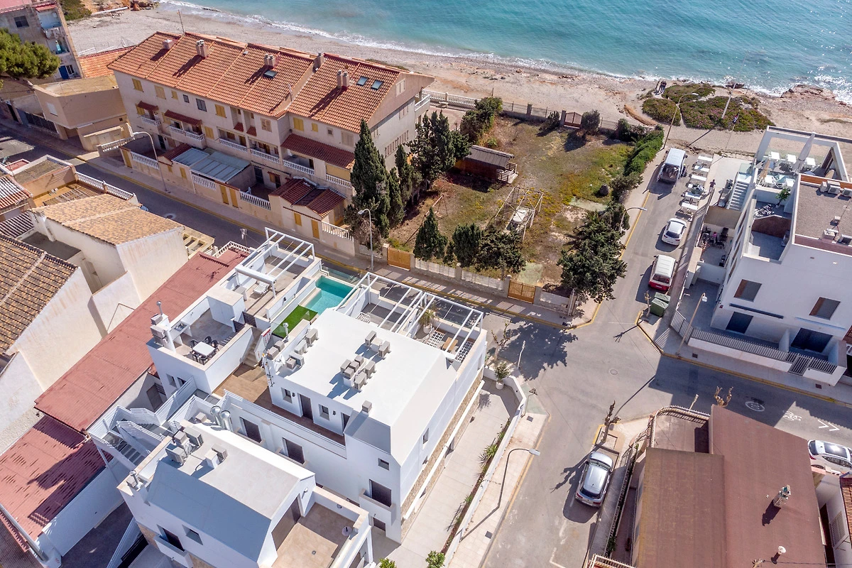 Der Flughafen Alicante ist in 50 Minuten erreichbar, während der Flughafen San Javier lediglich 13 Kilometer entfernt ist. Somit sind beide Flughäfen bequem erreichbar und bieten eine gute Anbindung an das Objekt. Die Umgebung des Neubaus ist geprägt von einer malerischen Landschaft und einer entspannten Atmosphäre, die sowohl für Erholungssuchende als auch für Aktivurlauber attraktiv ist. Zahlreiche Restaurants und Cafés laden in der Umgebung zum Geniessen lokaler und internationaler Spezialitäten ein, während die nahegelegenen Strände und Buchten zum Sonnenbaden und Schwimmen einladen.