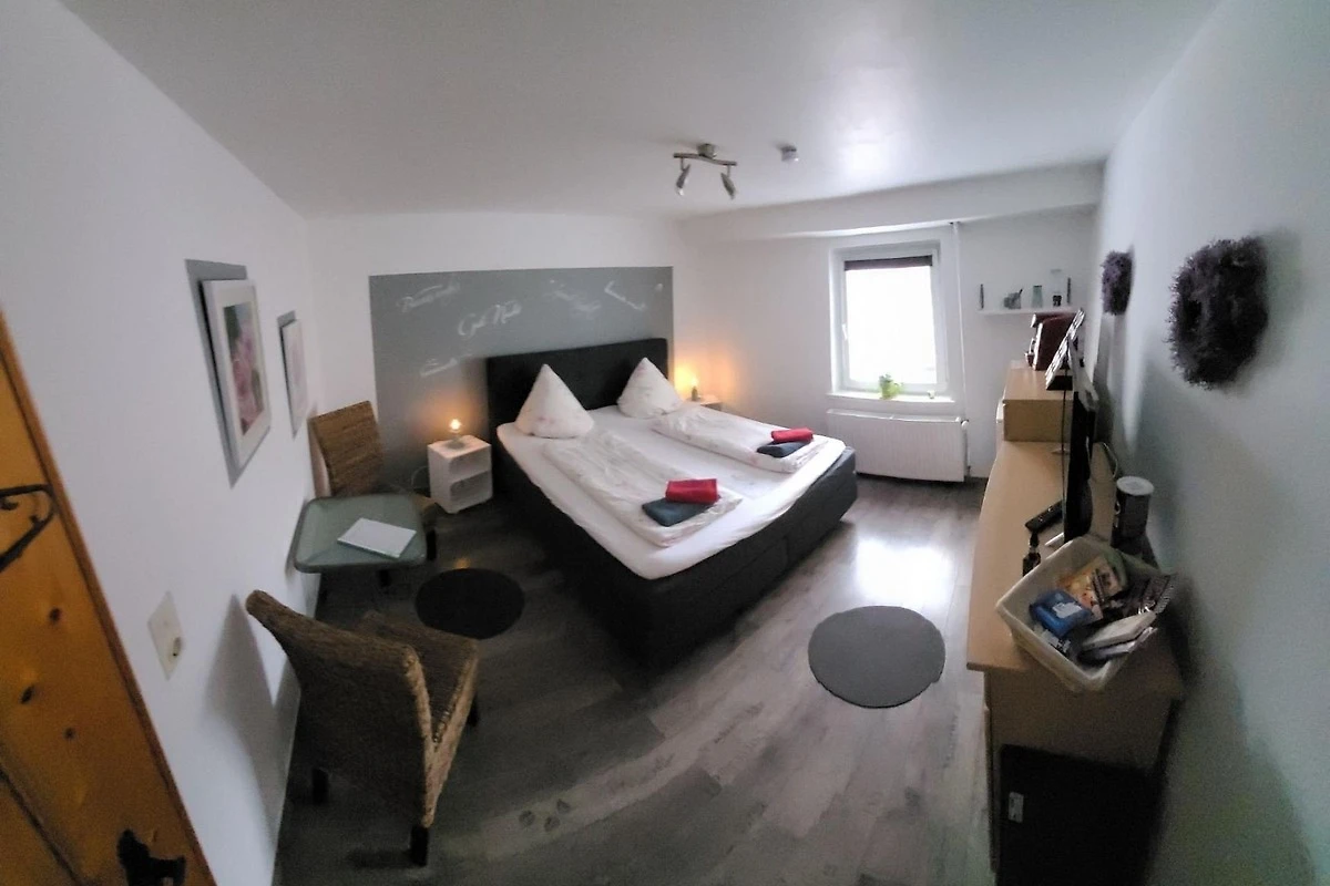 Herzlich Willkommen in der Bergstadt Lautenthal im Oberharz!Bei uns wohnen sie in einem ehemaligem Forsthaus hoch über den Dächern des Ortes mit Blick auf den Ort u den Bergen.Die Gästezimmeretage ist eine separate Etage mit eigener Haustür u grosser Terrasse.Das Haus liegt direkt am Wald wo man gleich die Wanderwege erkunden kann.Wir haben 2,5 Zimmer die sich ein grosszügiges modernes Badezimmer teilen.Viele Unternehmungen direkt in der Nähe (Dafür reichen keine 3 Wochen Urlaub :) )Harzer Schnitzelkönig (100 m), Hahnenklee (7 min), Goslar (20 min), Braunschweig (40 min), Thale ( 40 min), Wernigerode ( 30 min), Seesen (10 min), Clausthal (25 min)....* 140er Boxspringbett mit Topper* Kommoden*Tisch mit 1 Stuhl* Türgarderobe* Kühlschrank ( bei Anreise mit Getränken gefüllt zum Selbstkostenpreis)* Flachbildfernseher* Mikrowelle* Kaffeemaschine mit Kaffee, Tee, Espresso und Cappucchinopads* Wasserkocher* Süssigkeiten/ Snackkorb zum Selbstkostenpreis*kostenloses WLAN* Handtücher und Duschtücher für jede Person* Bettwäsche* kostenloser Parkplatz* eigene Hauseingangstür* eigene Terrasse zum Grillen, Chillen und Sonnenliegen