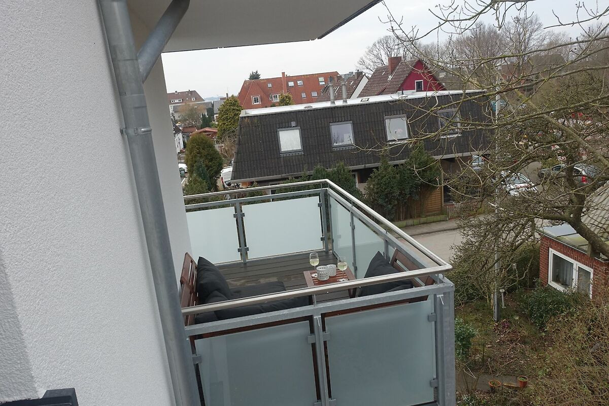 Die Wohnung besticht vor allem auch durch ihre zwei charmanten Balkone. Der hintere Süd-West-Balkon bietet Ihnen einen geschützten und ungestörten Ort zum Sonnen. Der vordere Nord-Ost-Balkon mit Blick gen Förde eignet sich hervorragend für ein sonniges Frühstück oder einen Sun-Downer in der Abendsonne. Bequeme Balkonmöbel sind hier selbstverständlich.