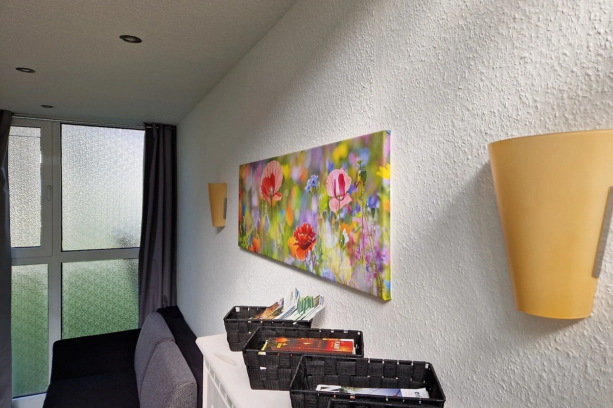 Die 55qm grosse Ferienwohnung liegt ruhig und bietet einen offenen Wohn-/Schlafbereich mit Boxspringbett 180cmx200cm, eine kleine Küchenzeile mit Spüle, Spülmaschine, Kühlschrank, 2 Herdplatten, Wasserkocher, Mikrowelle mit Grill/Ofen, Kaffee Pressstempelkanne, Esstisch . Bad mit Dusche. Einen Wintergarten auf 2 Ebenen mit gemütlicher Sitzecke (ausklappbar 150cmx200cm). Die Terrasse hat eine Sitzgarnitur für 4 Personen und einen Holzkohlegrill. PKW-Stellplatz ist vorhanden. TV inkl..