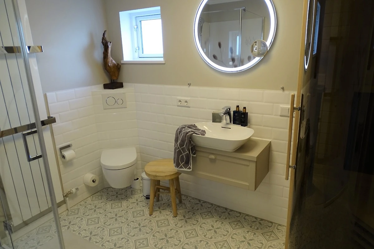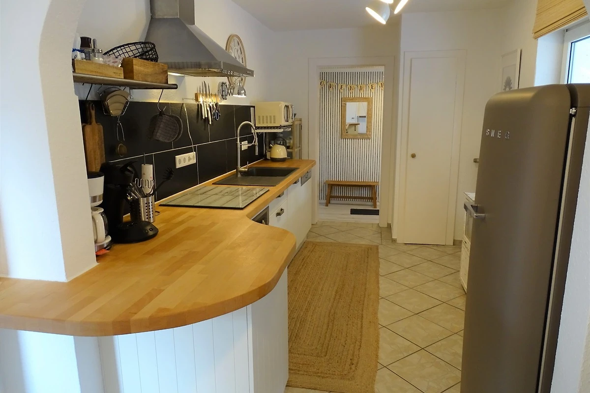 Aufgeteilt ist Ihr Feriendomizil in 2 Eingangsbereiche im Erdgeschoss, voll ausgestattete Küche, neues Bad mit ebenerdiger Dusche, WC und Infrarotkabine. Wohnzimmer mit Essbereich, Holzofen, Couchgarnitur und Flachbildfernseher. Grosses Schlafzimmer mit Doppelbett.