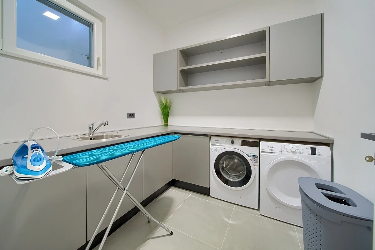 Die Villa ist modern eingerichtet und gut ausgestattet. Unter anderem stehen eine Klimaanlage, WLAN, eine Geschirrspülmaschine und eine Waschmaschine zur Verfügung.