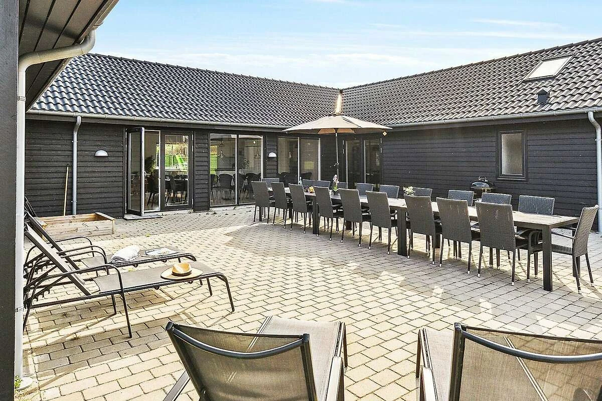 , Wohnzimmer(2x Einzelklappbett ), Wohnzimmer(4x Einzelklappbett ), Küche(Kochherd(elektrisch), Dunstabzugshaube, Kaffeemaschine, Mikrowelle, Spülmaschine, Kühl-/Gefrierkombination), Wohn-/Schlafzimmer(TV(Deutsch Fernsehsender, dänische Fernsehsender), CD-Spieler, Stereoanlage, Hochstuhl), Schlafzimmer(Doppelbett, Babybett), Schlafzimmer(Doppelbett), Schlafzimmer(Doppelbett), Schlafzimmer(2x Einzelbett), Schlafzimmer(2x Einzelbett), Schlafzimmer(2x Einzelbett), Schlafzimmer(2x Einzelbett), Schlafzimmer(2x Einzelbett), Schlafzimmer(2x Einzelbett), Badezimmer(Fußbodenheizung)(Trockner, Waschbecken, Dusche, Toilette, Waschmaschine), Badezimmer(Fußbodenheizung)(Waschbecken, Dusche, Toilette), Badezimmer(Fußbodenheizung)(Waschbecken, Dusche, Toilette), Badezimmer(Fußbodenheizung)(Waschbecken, Dusche, Toilette), Spielkonsole, Whirlwanne(im Innenbereich, erwärmt, 5 Personen), Sauna(im Innenbereich, 4 Personen), Balkon oder Terrasse, Heizung(elektrisch), Terrasse, Gartenmöbel, Pool(im Innenbereich, 200 m2), Spielgeräte, Tischtennisplatte, Tischfußball, Dart, Billard, Luft-Wasser-Wärmepumpe