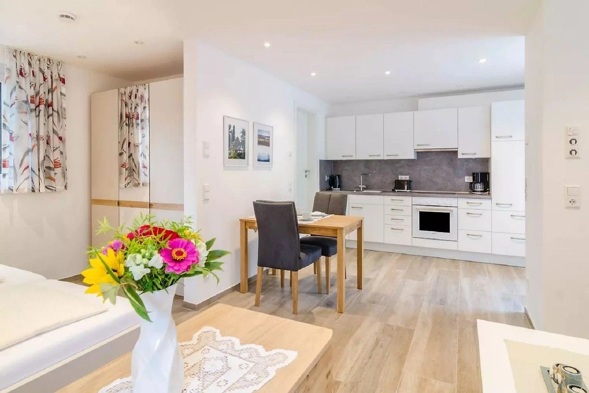 Heller, grosser Wohnraum mit Wohn- und Schlafbereich, grosser Küche (incl. Geschirrspüler) Essbereich. eigene Terrasse, separater Eingang, Parkplatz direkt vor dem Haus. Bettwäsche, Hand- und Duschtücher, WLAN kostenlos.