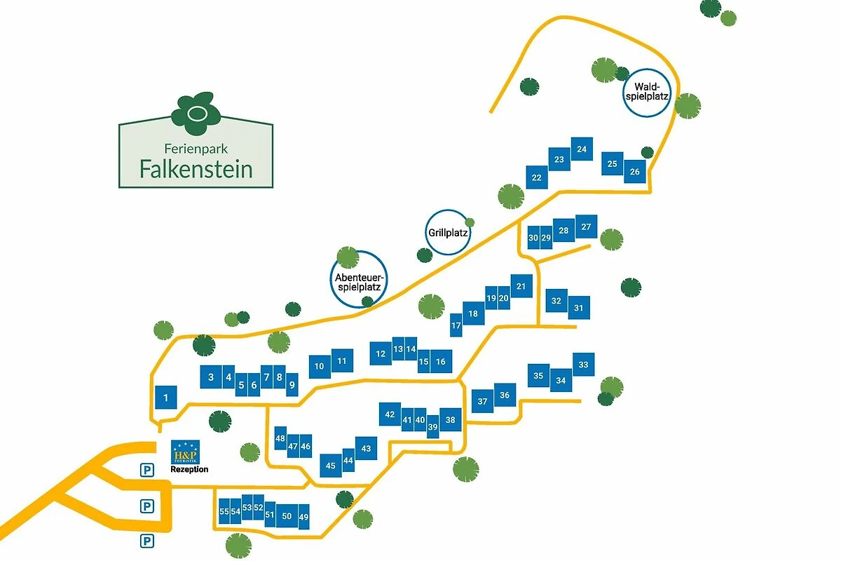 In unserer am Waldrand gelegenen und parkartig gestalteten Ferienanlage finden Sie kindgerecht und gemütlich eingerichtete Ferienhäuser und Ferienwohnungen für bis zu 8 Personen. Durch viele attraktive Freizeitangebote im Park und in der Umgebung ist der Ferienpark Falkenstein ein perfektes Urlaubsziel für Familien. In der autofreien Anlage können sich unsere kleinen Gäste nach Herzenslust auf dem Waldspielplatz oder an den Tischtennisplatten austoben.