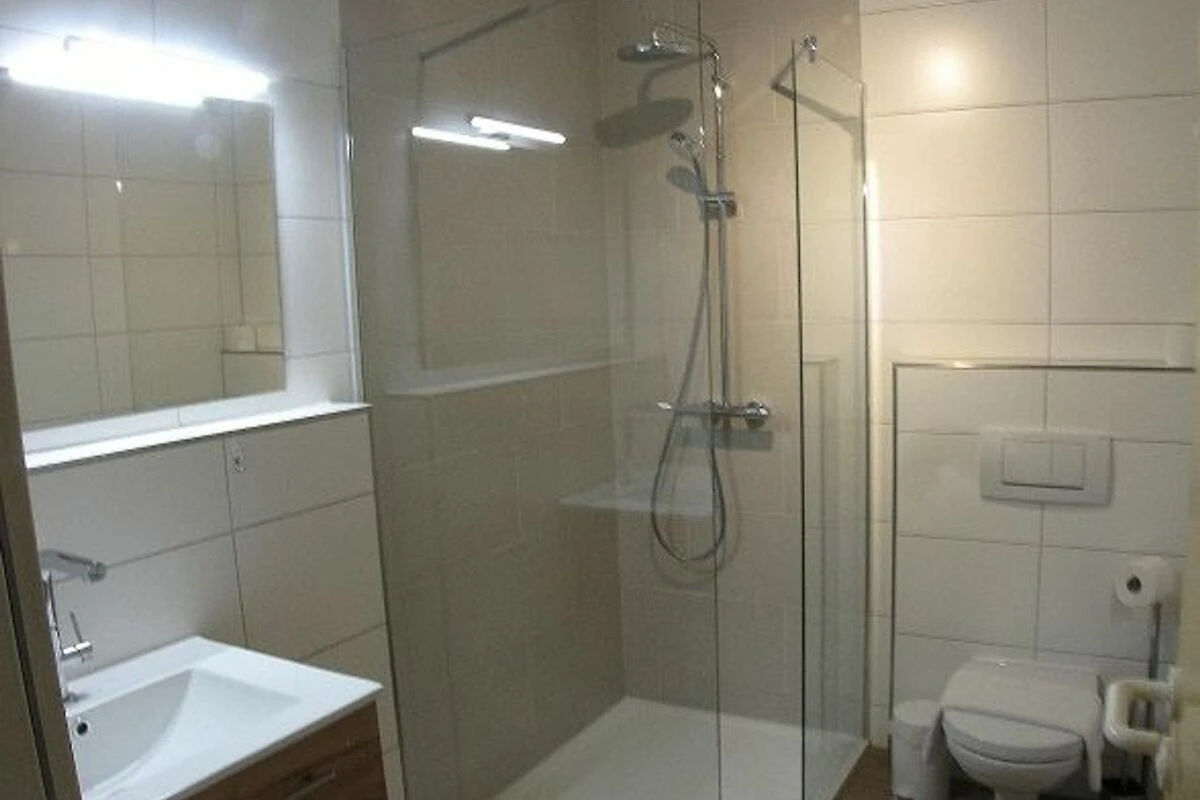 Es steht Ihnen ein kleines WC mit Waschtisch und das grössere Bad mit einer 90 cm x 120 cm grossen Wohlfühldusche zur Verfügung. Nutzen Sie die Regenschauerfunktion der Dusche, um zu entspannen.