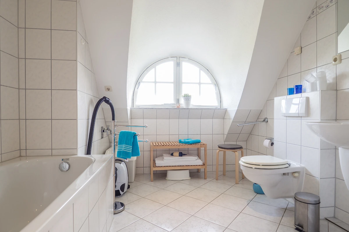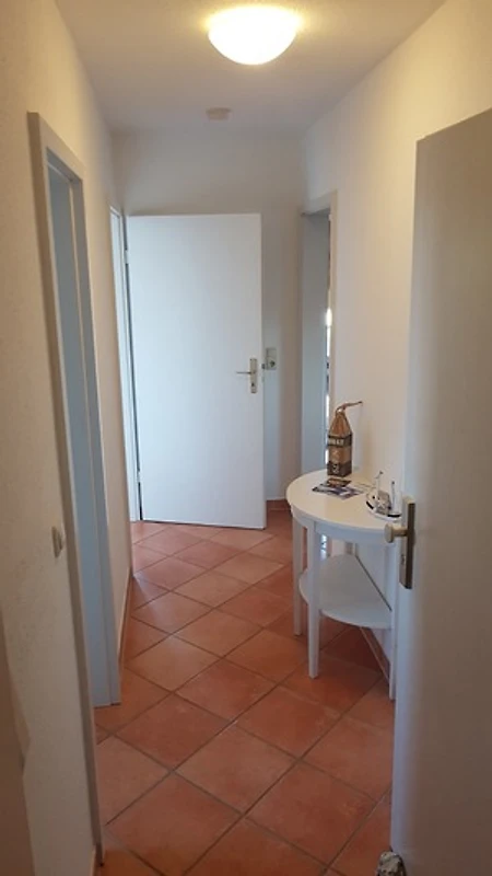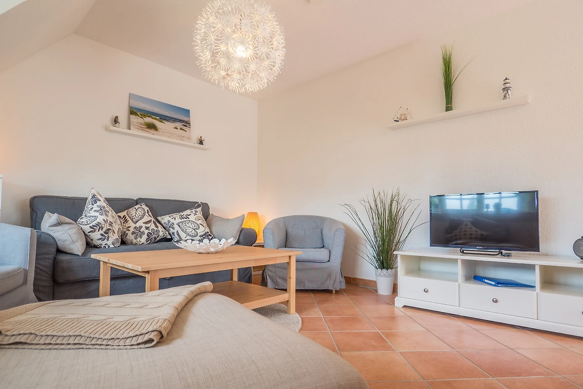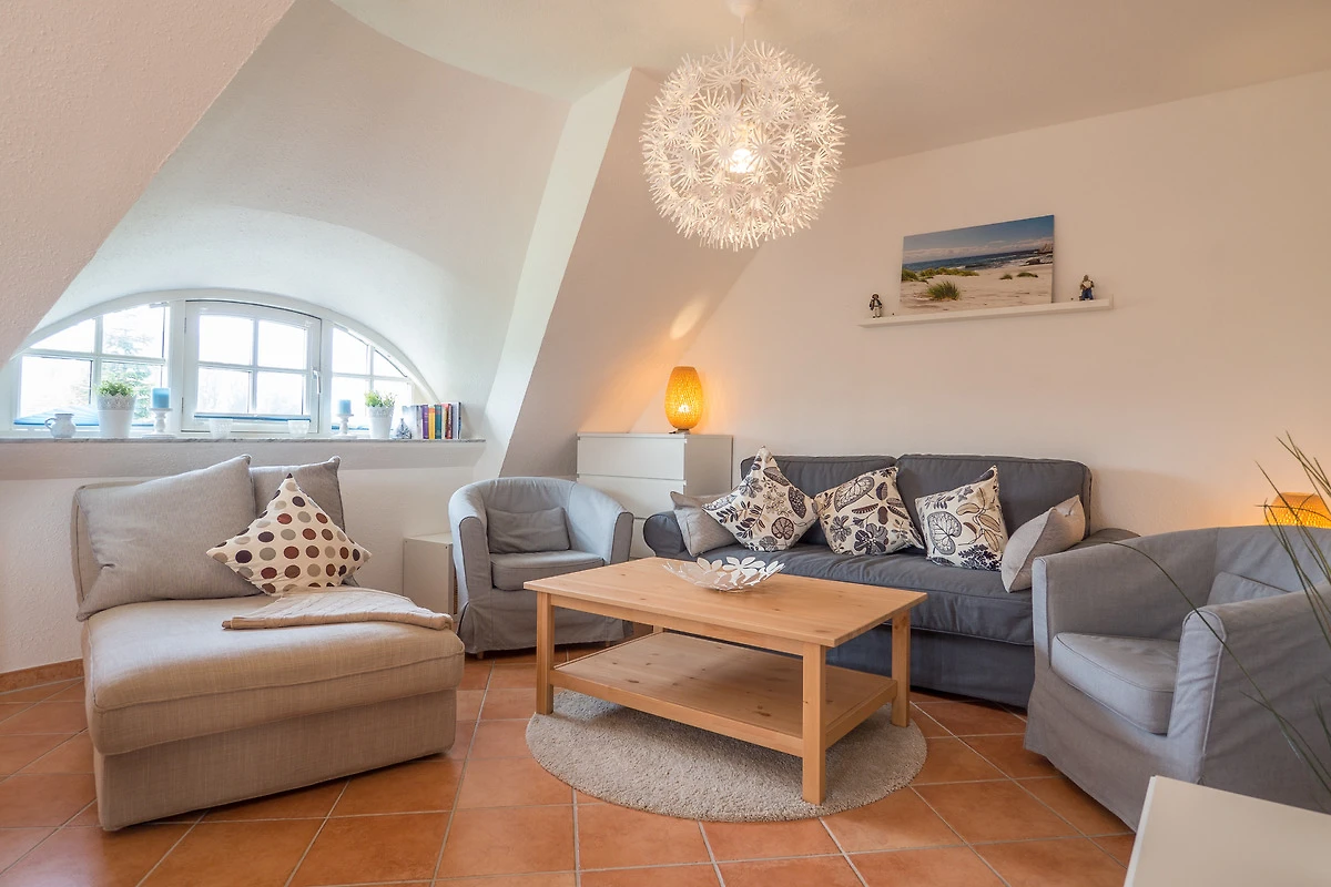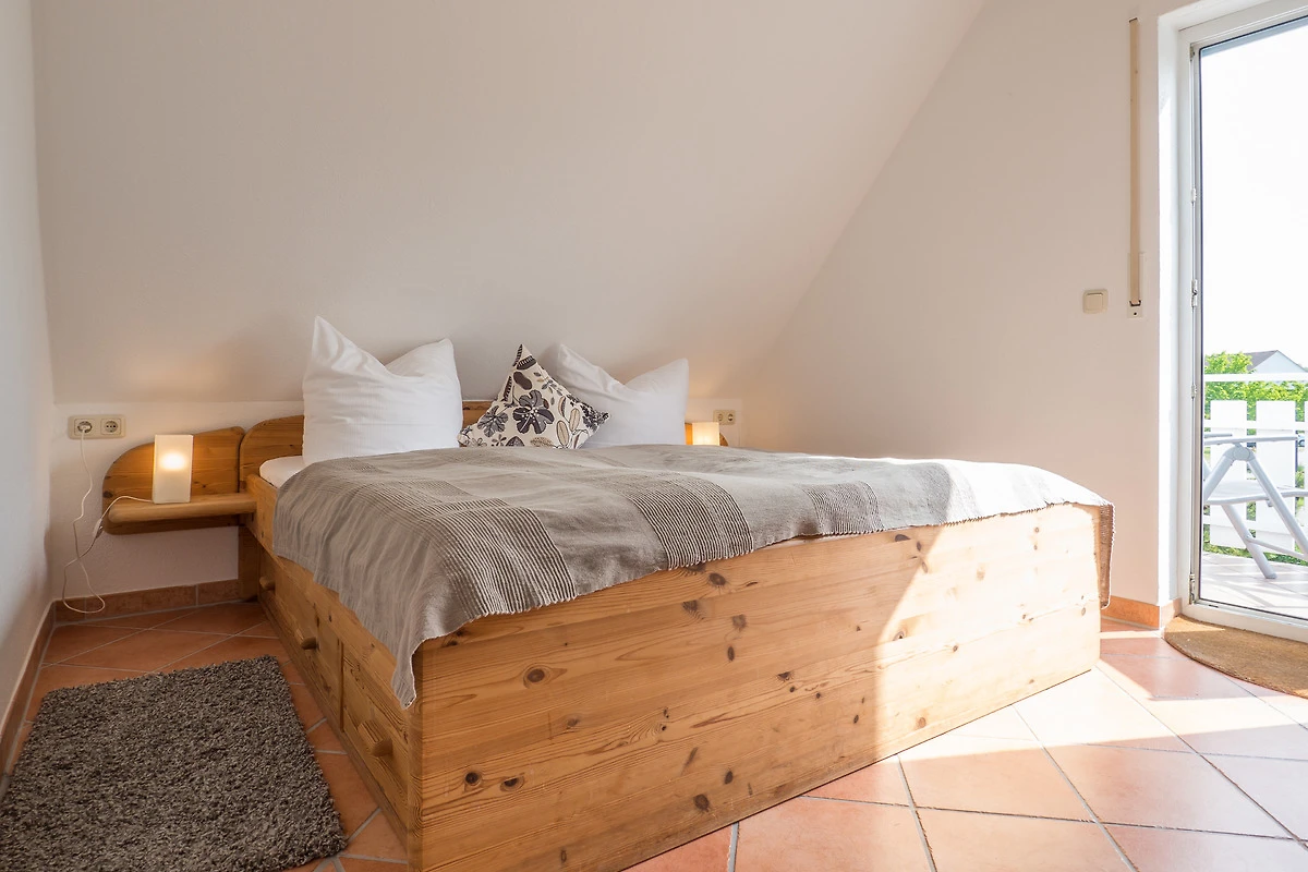 Ihre Maisonette-Ferienwohnung "Die Sehnsucht" (für bis zu 6 Personen) befindet sich im 1.OG / DG ( Spitzboden ) der linken Doppelhaushälfte und ist über ein Treppenhaus zu erreichen. Sie betreten die Wohnung über den schönen, hell eingerichteten Flur. Von hier haben Sie Zugang zu allen weiteren Räumlichkeiten, dem Bad, dem separaten Schlafzimmer, wie auch dem besonders lichtdurchfluteten Wohn-/Essbereich mit offener Küche.