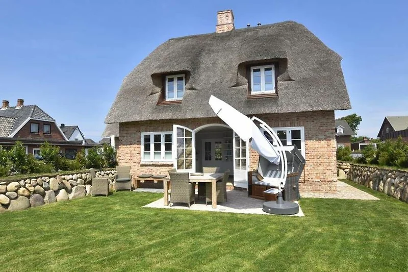 Luxuriöses Nichtraucher-Hausteil unter Reet mit ca. 129 qm für 6 Personen mit nach Süden ausgerichteter Terrasse und Garten.
